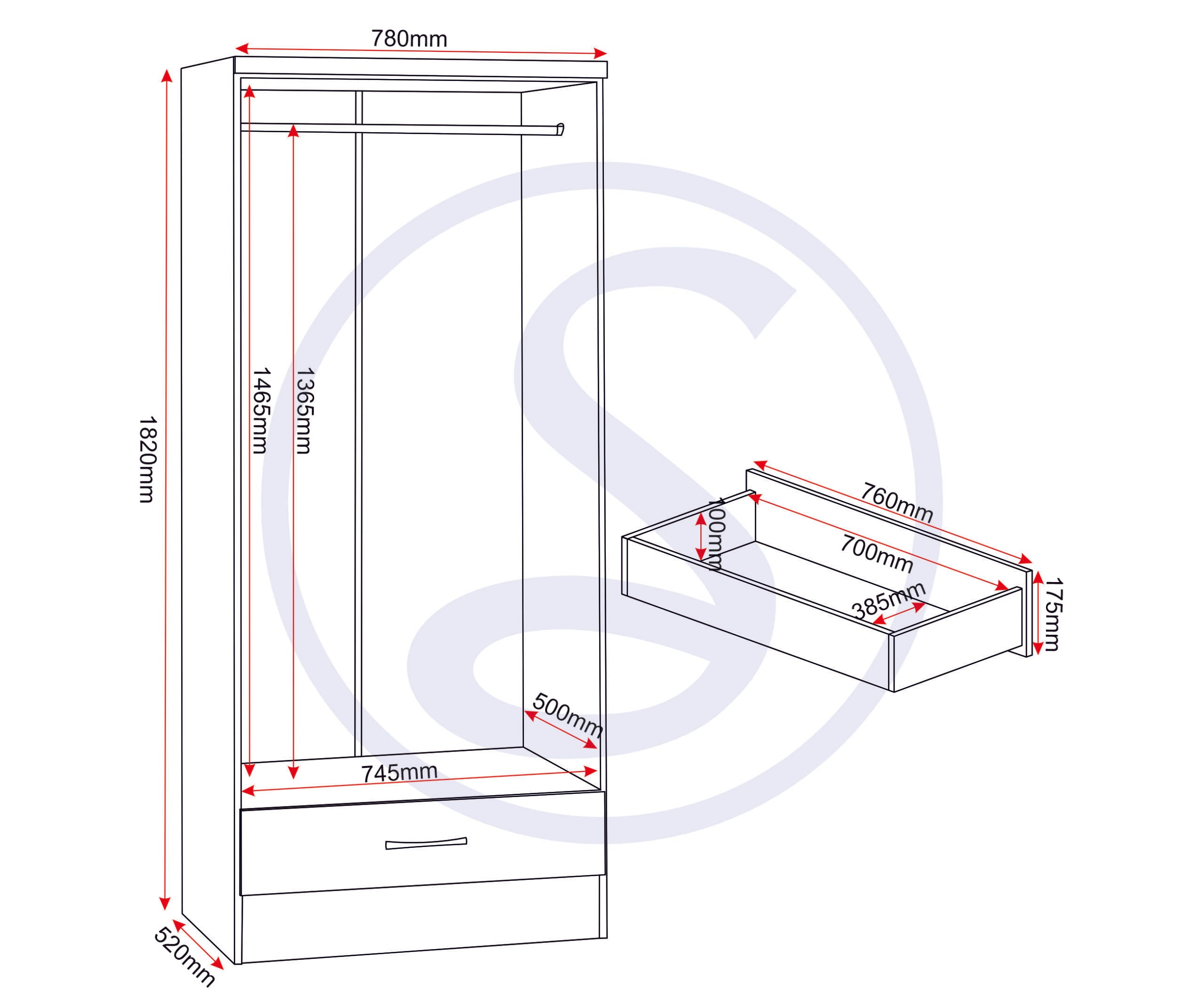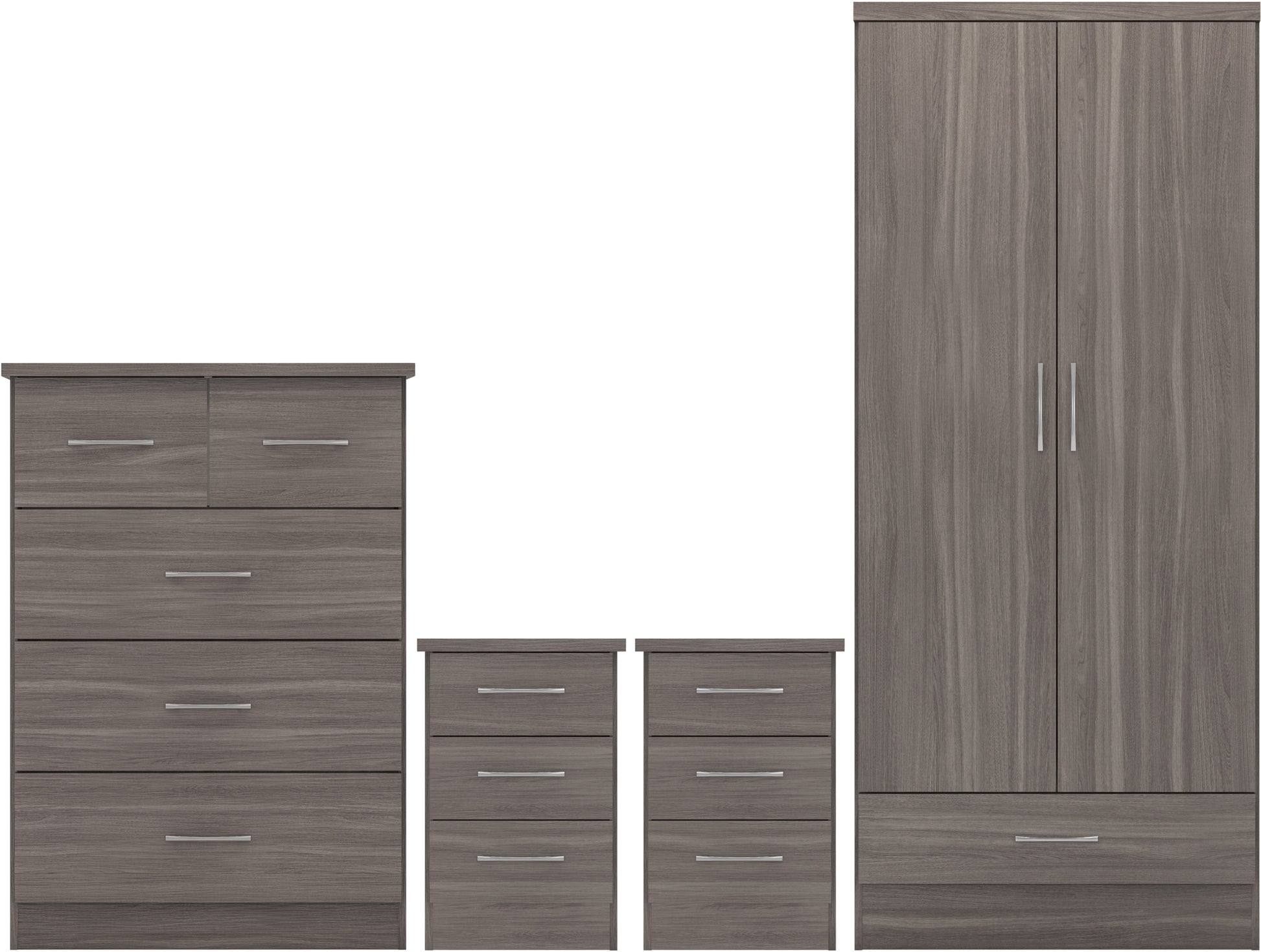 Nevada 2 Door 1 Drawer Wardrobe Bedroom Set - BLACK WOOD GRAIN