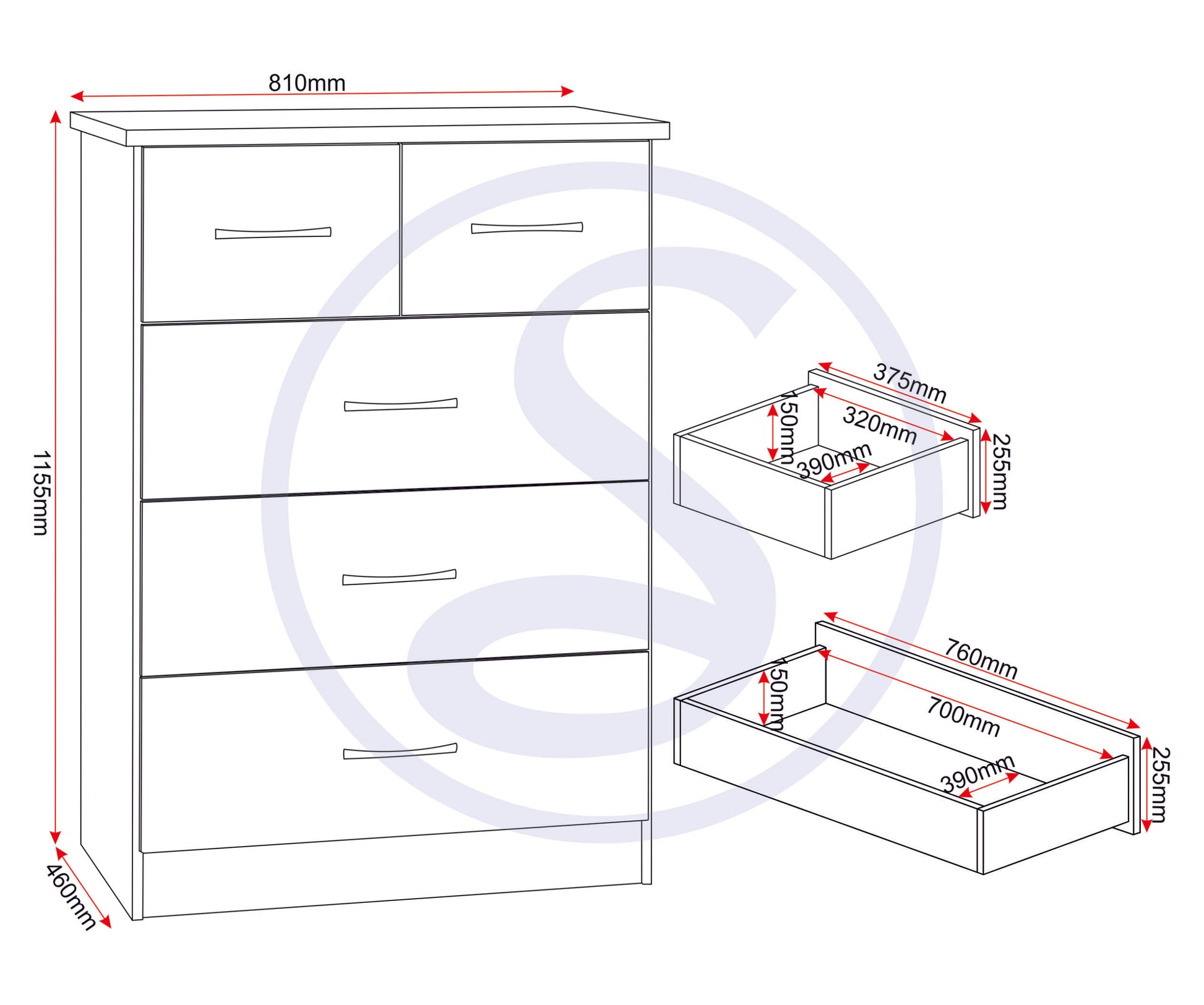 Nevada 3 Door 2 Drawer Mirrored Wardrobe - WHITE GLOSS