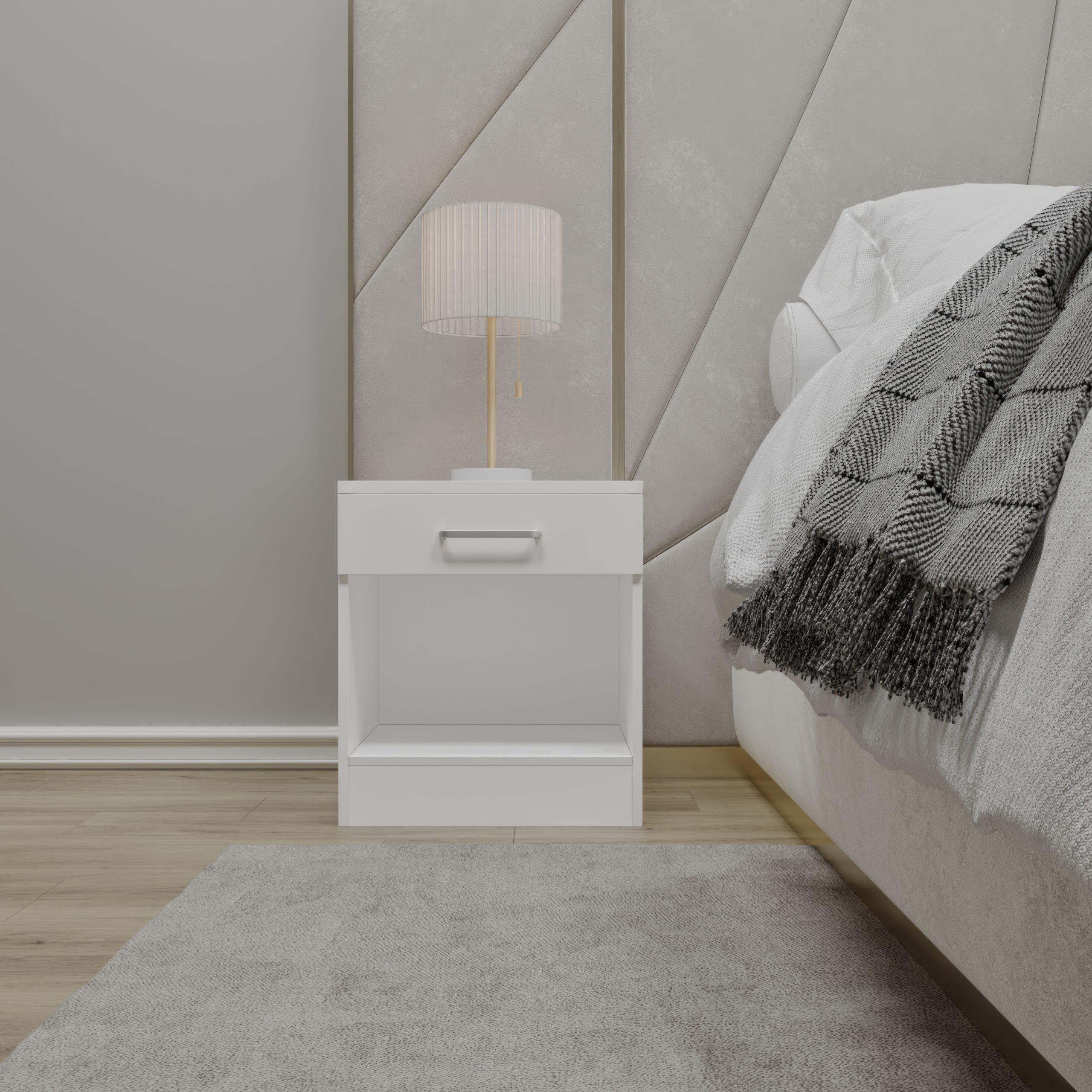 Make space feel calm and considered with the Dakota 1 Drawer Bedside in a White. Built for real homes, it provides generous storage for everyday life so everything has its place. Clean lines and a durable build make it an easy fit in both modern and classic rooms.