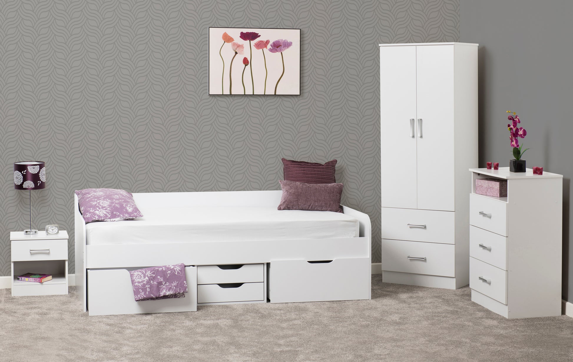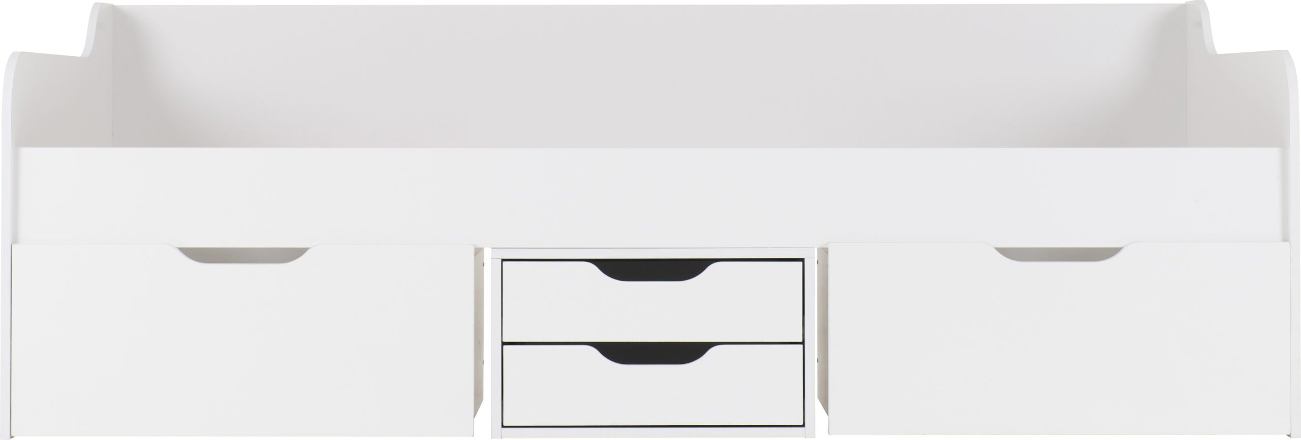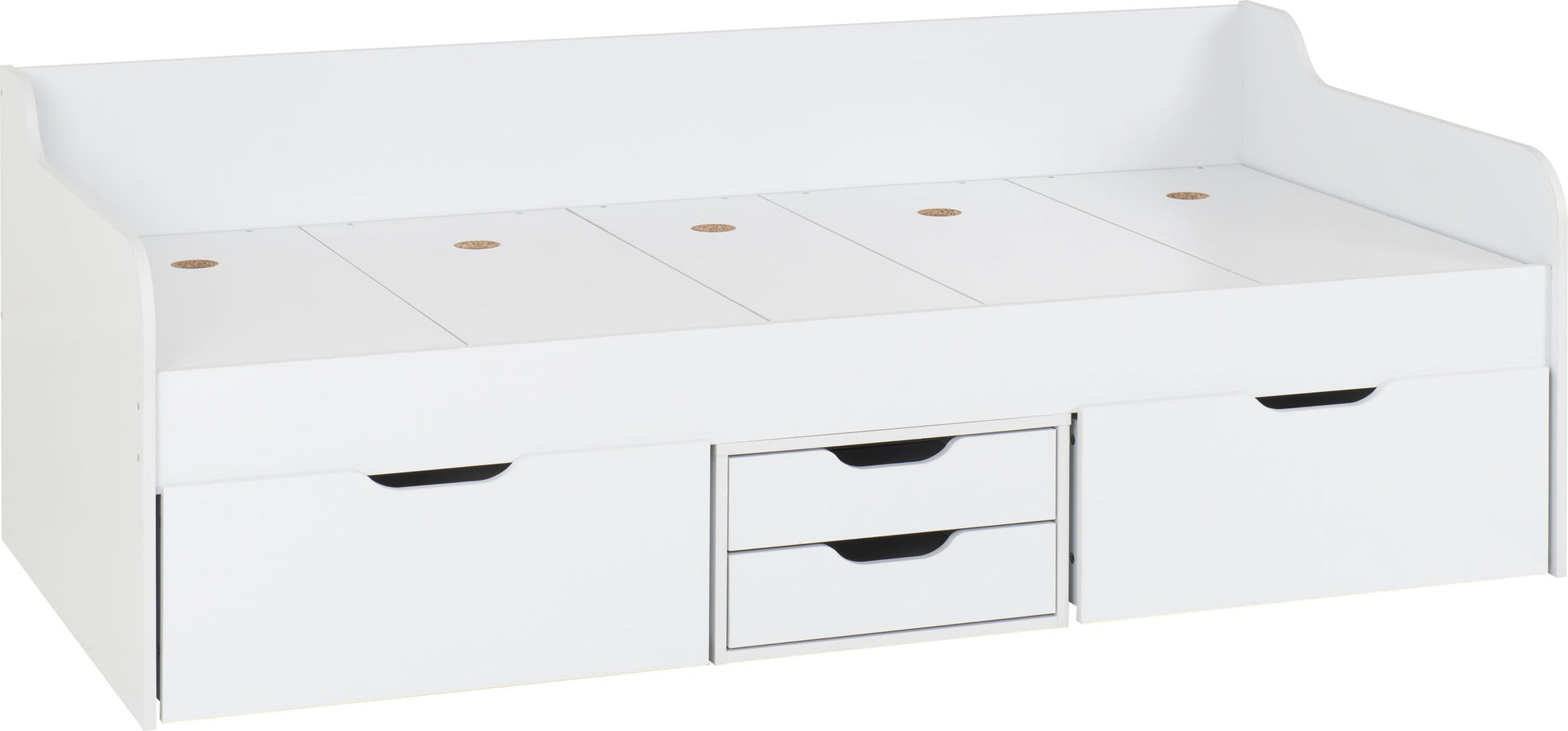 The Dante Day Bed in a White adds a homely touch with a modern edge. Everyday-friendly and tidy, it offers plenty of room to keep everything organised you'll use from day one. Clean lines and a durable build make it an easy fit in both modern and classic rooms.