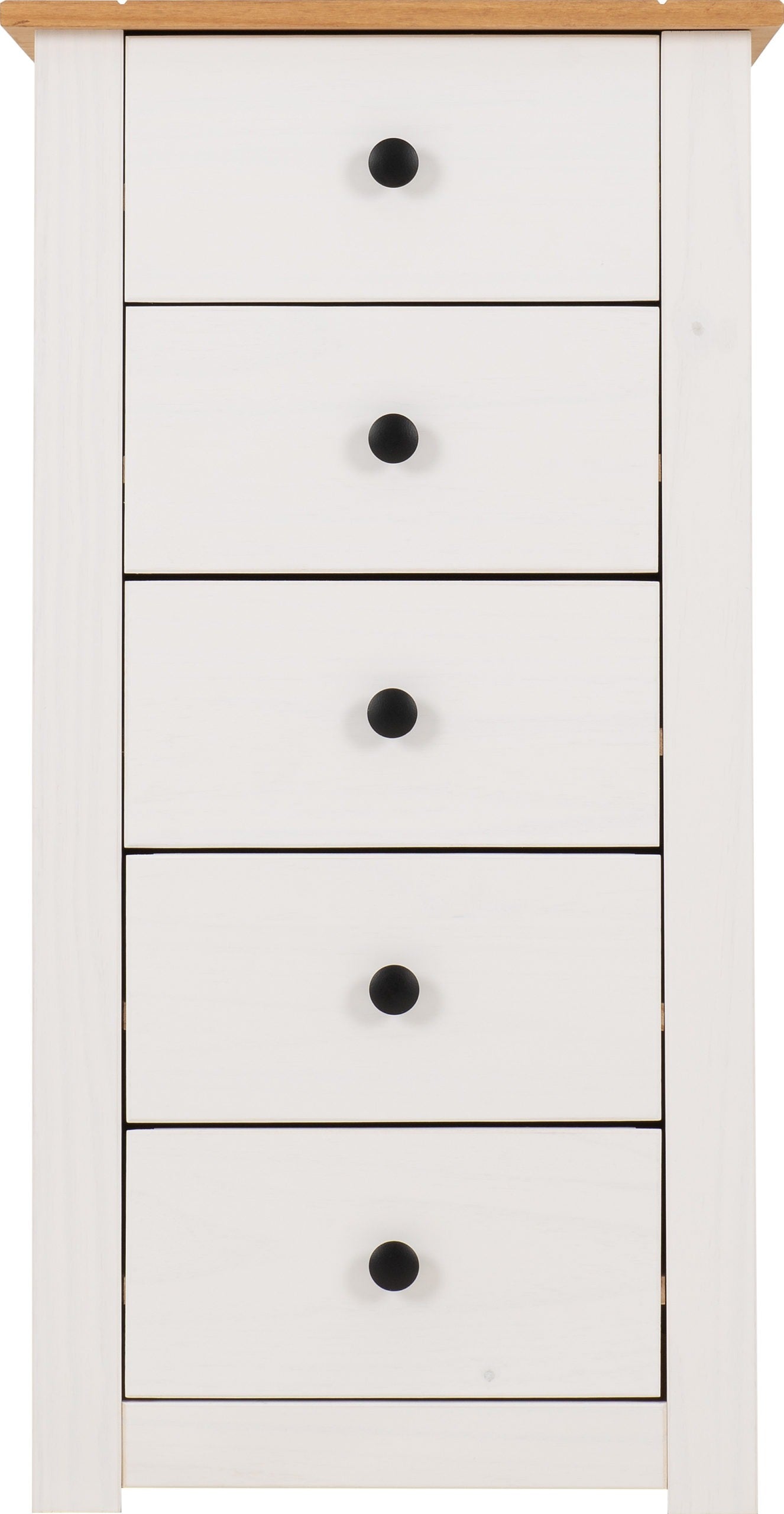 Make space feel calm and considered with the Panama 5 Drawer Chest finished in White/Natural Wax. Built for real homes, it provides generous storage for everyday life so everything has its place. With a quietly premium feel, it's made to look good and work hard for years.