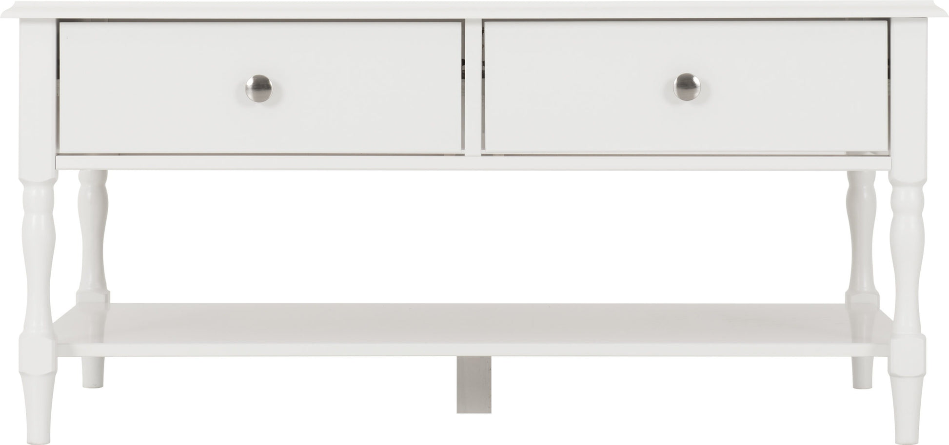 Bring warmth and easy style to your home with the Stratford 2 Drawer Coffee Table wrapped in a White. Built for real homes, it provides generous storage for everyday life so everything has its place. Sturdy by design, it pairs simple lines with a quality feel that lasts.
