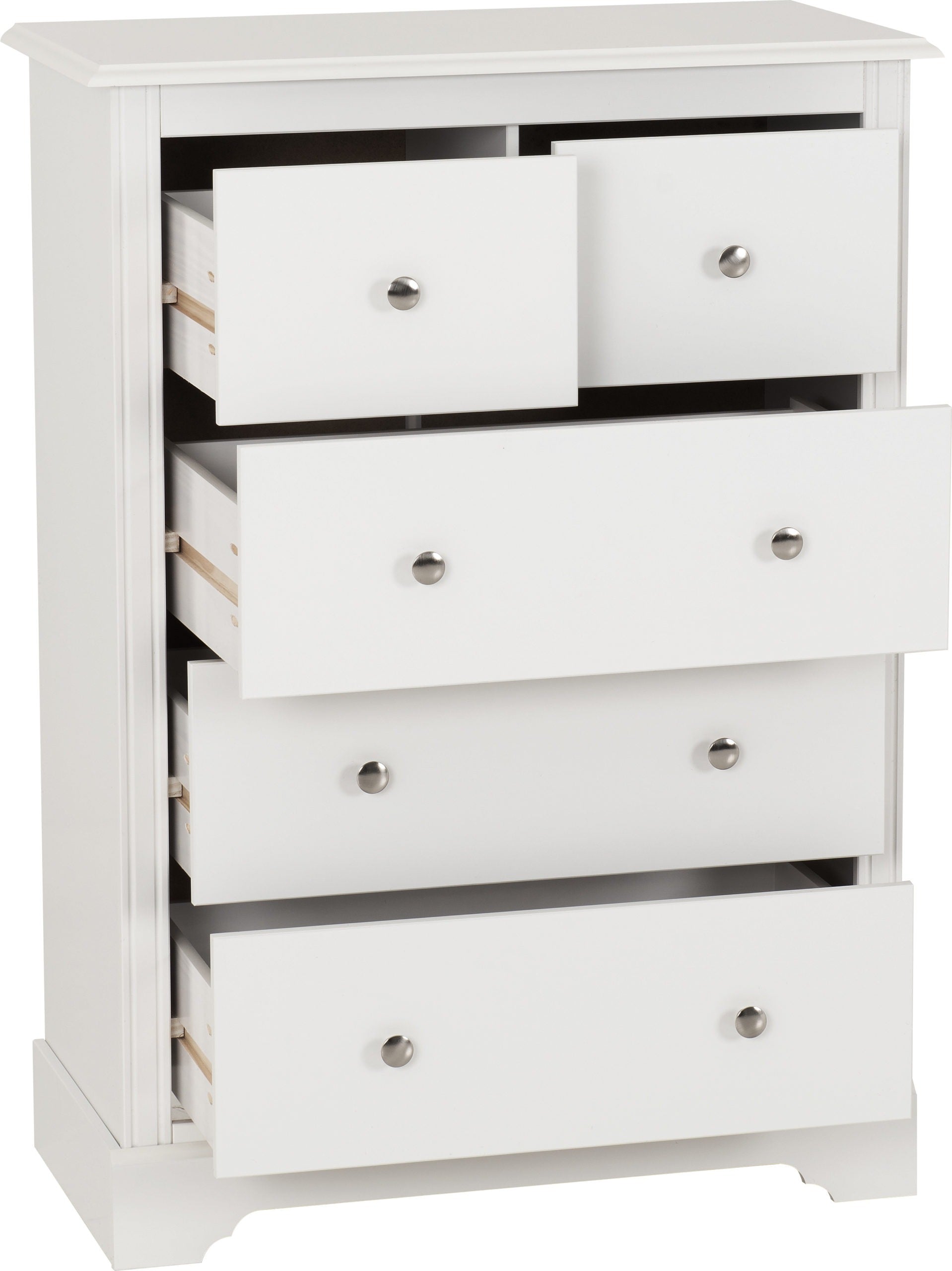Bring warmth and easy style to your home with the Stratford 3+2 Drawer Chest in a White. Thoughtfully designed for busy family spaces, it offers three generous drawers plus two doors to keep life neatly organised. Clean lines and a durable build make it an easy fit in both modern and classic rooms.
