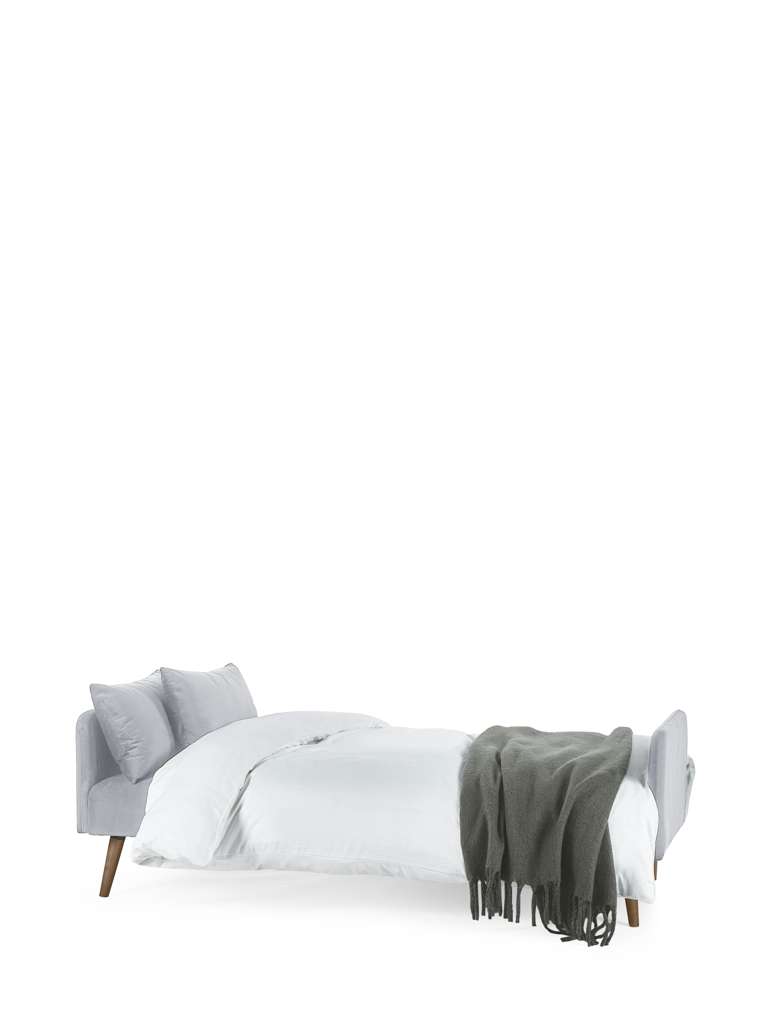 Discover the Andi Sofa Bed in Greyâa perfect blend of retro charm and contemporary style, bringing both comfort and versatility to your space. Upholstered in sleek grey fabric, this piece complements any decor and effortlessly folds out into a cosy bed, making it ideal for hosting overnight guests. Two matching pillows are included to enhance comfort and complete the look. With its pale wood-effect legs, it exudes warmth and sophistication, making it the perfect addition to compact or multifunctional rooms.