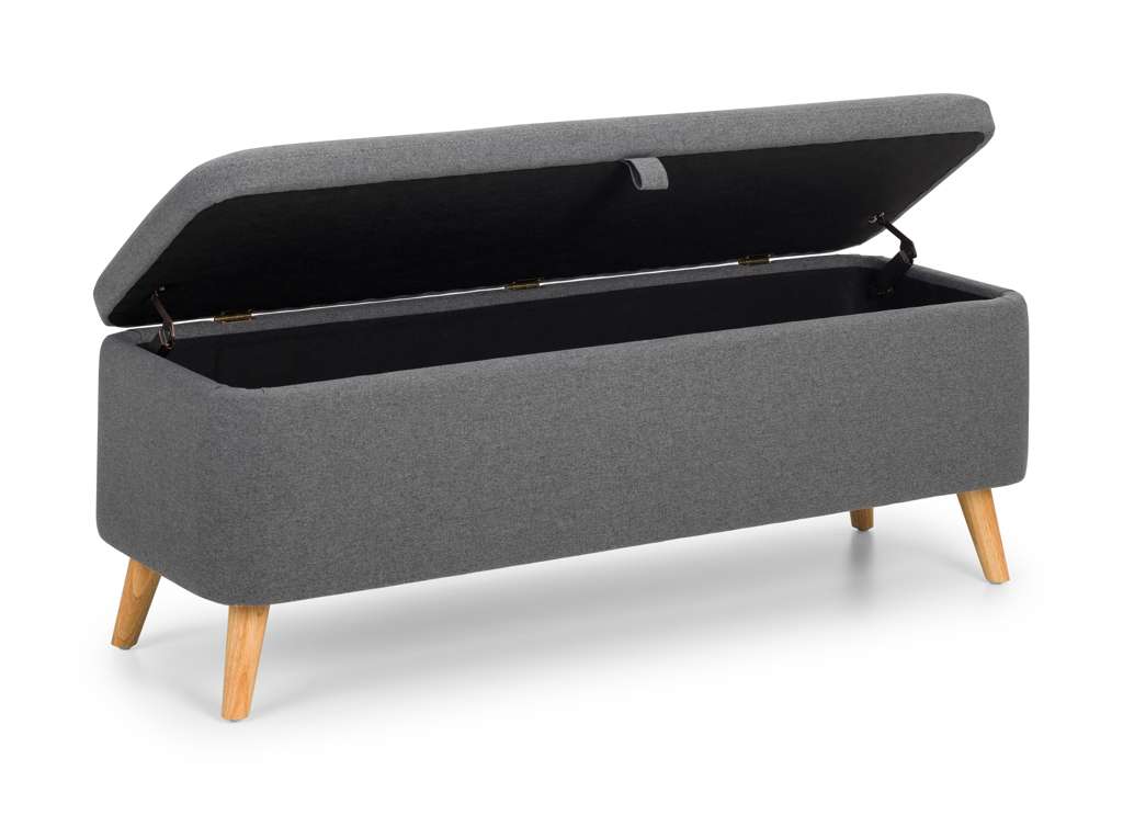 Perfectly proportioned to sit at the end of the Julian Bowen Astrid bed, this contemporary Astrid blanket box is upholstered in a crisp grey linen fabric. This contemporary, Scandinavian design fits perfectly with a wide range of bedroom décor. The perfect storage for your cushions, linens, or duvets with the ease of soft close hinges.