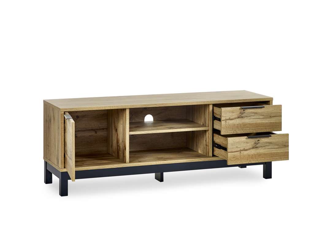 Transform your living space with the Bali TV Unit in Oak, where style meets functionality seamlessly enhanced by revolutionary click furniture technology. The modern oak finish, complemented by contrasting black legs and handles, brings a classic industrial charm to your bedroom. Crafted with precision and using high-quality materials, this unit ensures both durability and low-maintenance upkeep, making it a practical and stylish addition to your interior. With a spacious cupboard and two pull-out drawers, it offers ample storage for all your media essentials, creating an organised and aesthetically pleasing entertainment hub.