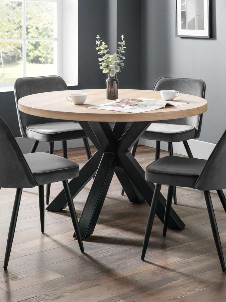 As an alternative to the rectangular table, the Berwick round table gives an industrial feel to your dining area. With an easy-to-clean oak top and black frame legs, this table will provide you and your family with a relaxed dining experience.