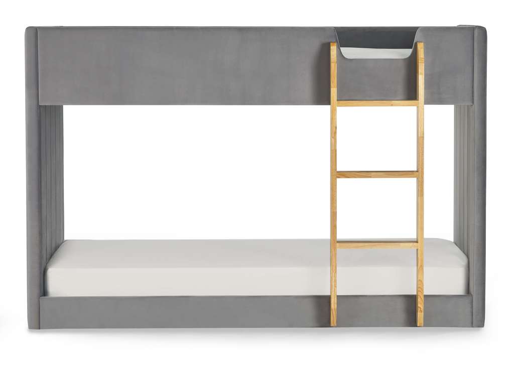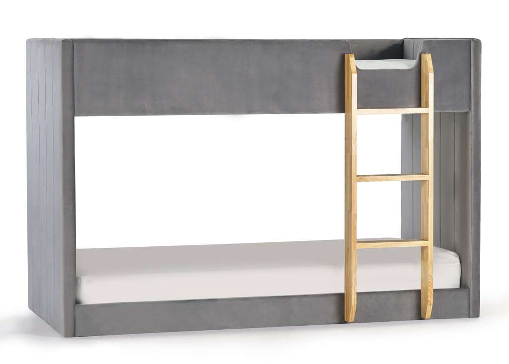 The Daytona Bunk is a dreamy haven for your little ones, meticulously crafted to infuse their space with comfort and style. Wrapped in luxurious grey velvet, this bunk exudes a soft and inviting charm. The woodgrain 3-step ladder provides easy access to the top bunk, ensuring safety and convenience for your youngsters. The paneled effect on both the front and back adds a touch of sophistication, creating a cosy cocoon for bedtime stories and sweet dreams.