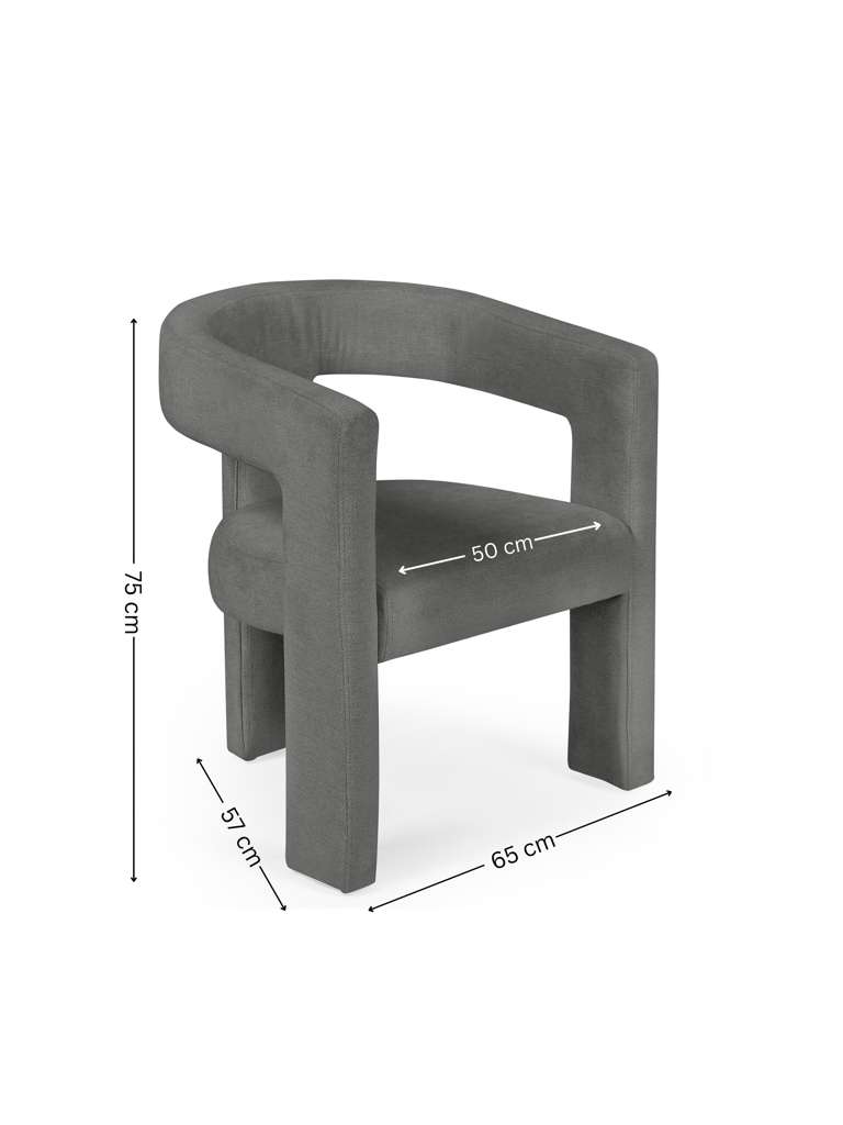 Bring a sense of calm and character to your home with this elegant grey chair, wrapped in luxuriously soft chenille fabric that invites you to sink in and unwind. Its gently curved silhouette blends effortless style with cosy comfort, perfect for elevating both dining and living spaces. Whether arranged as a set around your table or featured as an accent chair in a cozy reading nook or office, this piece effortlessly combines comfort, versatility, and timeless style. Assembly required. Table sold separately.