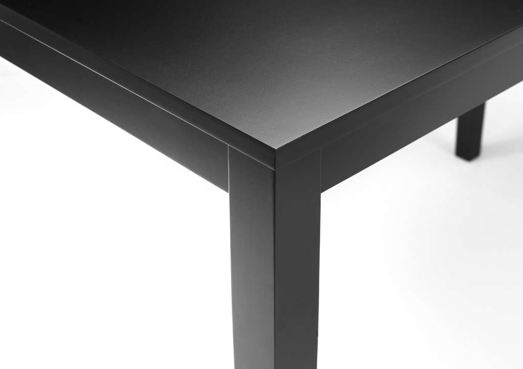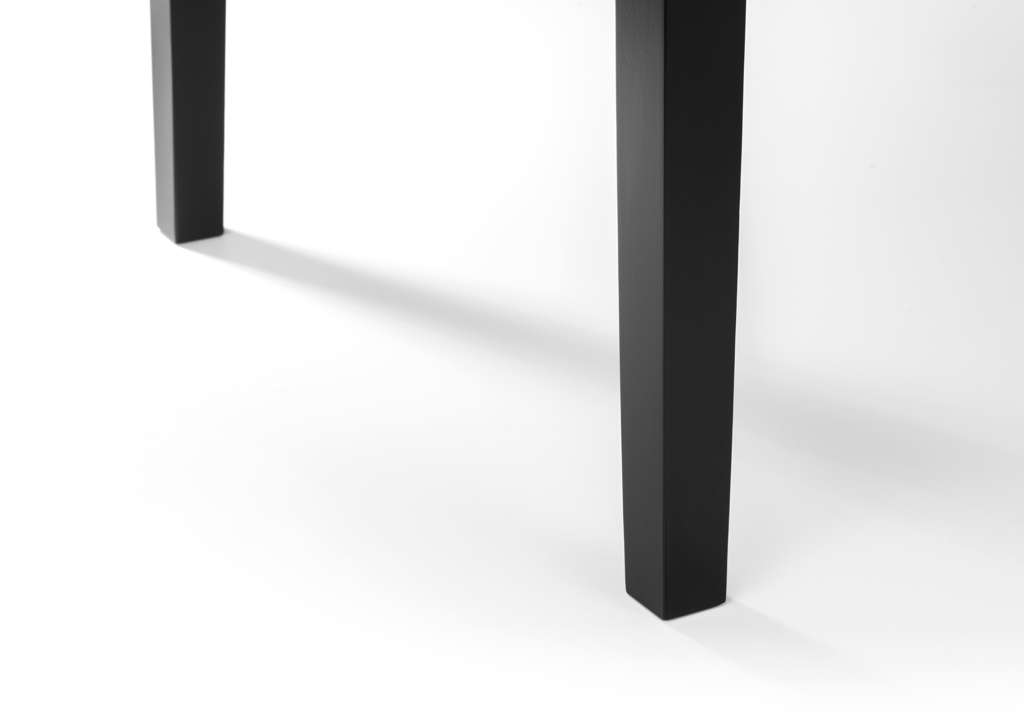 This lacquered particleboard and rubberwood dining table offers a simple, space saving design, meeting the requirements of the modern domestic home.  Finished in a block black colour, allowing this dining table to coordinate with a wide range of décor