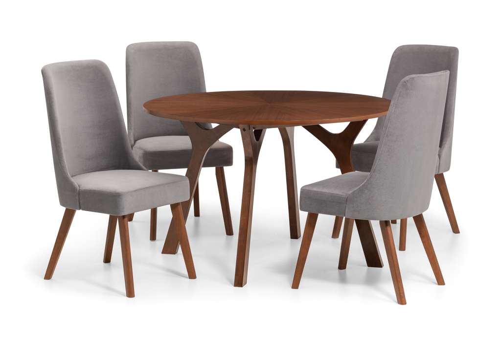 The Huxley round dining table is a contemporary design, with a traditional influence. Bringing warmth to any dining room, perfect for a mix of modern or traditional decor. Crafted from walnut veneer, this rich coloured dining table excels in stability