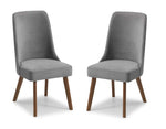 The Huxley Dining Chair features a glamourous curved back, with modern tapered walnut legs. Finished in dusk grey chenille fabric, this dining chair adds a touch of elegance to any dining area, the perfect match for the Huxley Round Table.