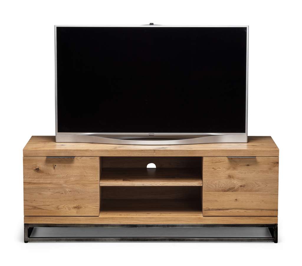Made from solid oak, this TV Unit offers a rustic finish emphasising the stunning natural wood grain. The Brooklyn TV Unit offers a vintage edge featuring industrial style metal legs. Featuring two cupboards with shelves, and an additional shelf in the middle suitable for a console, this TV Unit is perfect for a wide range of modern decor. Part of the Julian Bowen Brooklyn Dining and Occasional Collection.