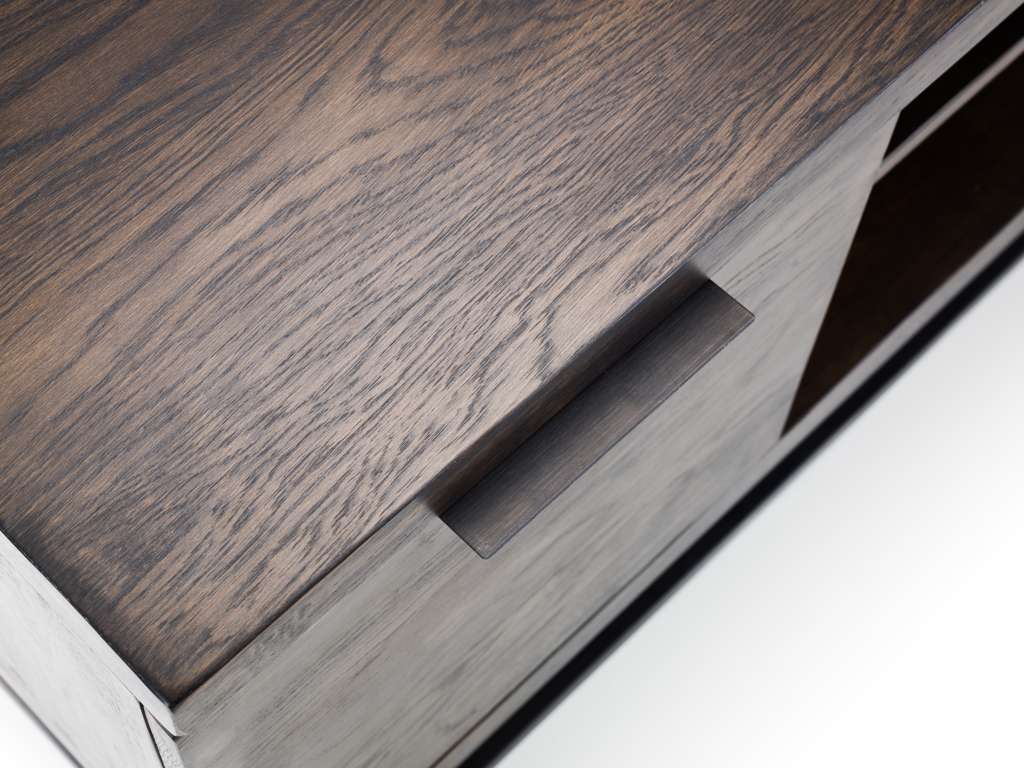 Made from solid oak, this TV Unit offers a rustic dark oak finish emphasising the stunning natural wood grain. The Brooklyn TV Unit offers a vintage edge featuring industrial style metal legs. Featuring two cupboards with shelves, and an additional shelf in the middle suitable for a console, this TV Unit is perfect for a wide range of modern decor. Part of the Julian Bowen Brooklyn Dining and Occasional Collection.