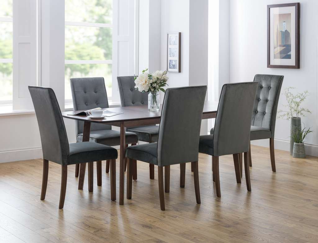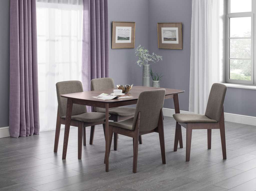 A truly stunning walnut finish dining table crafted from solid beech and beech veneers. Its sleek, modish design adds a real wow factor to any dining room, while an easy to use extending leaf means that it also offers exceptional practicality.