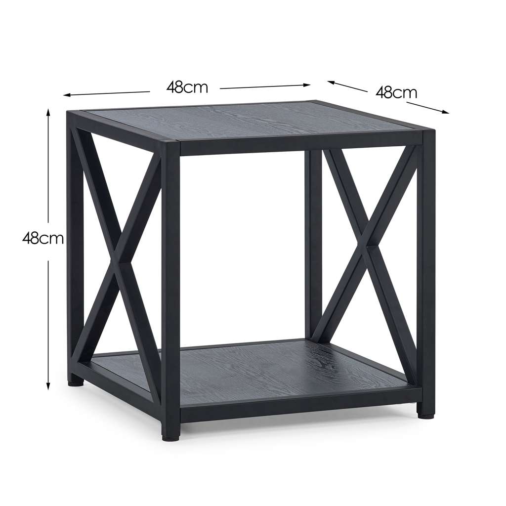 Complete your living space with the Lima Lamp Table. With a striking cross frame design and finished in a stunning black ash, the Lima will add a touch of contemporary class to your home. With a shelf underneath, this piece is both functional and leaves a gorgeous look.