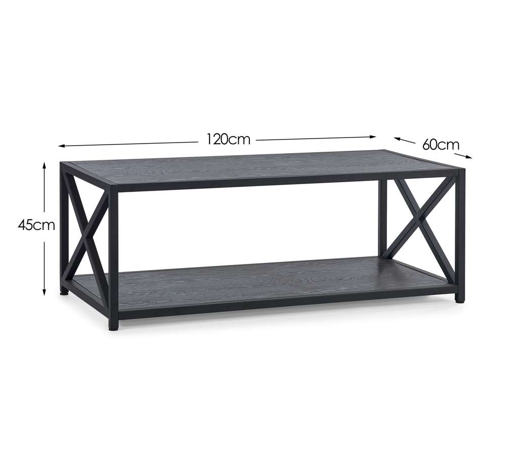 Complete your living space with the Lima Coffee Table. With a striking cross frame design and finished in a stunning black ash, the Lima will add a touch of contemporary class to your home. With a shelf underneath, this piece is both functional and leaves a gorgeous look.