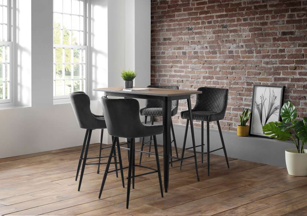 The Luxe Bar Stool offers a striking statement look, creating a welcome addition in any home bar or kitchen. Upholstered in a choice of Grey, Blue or Mustard velvet with luxurious quilted stitching, upon contemporary black legs, the Luxe adds a touch of elegance to any home.