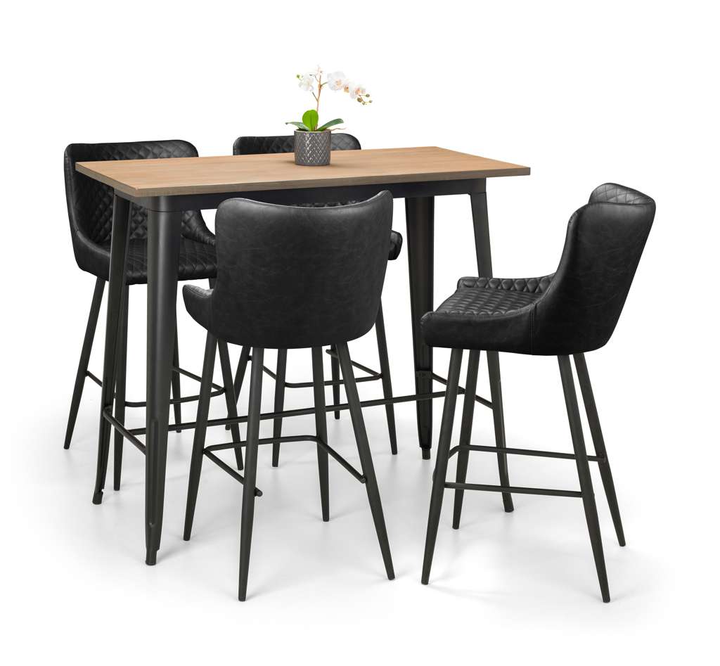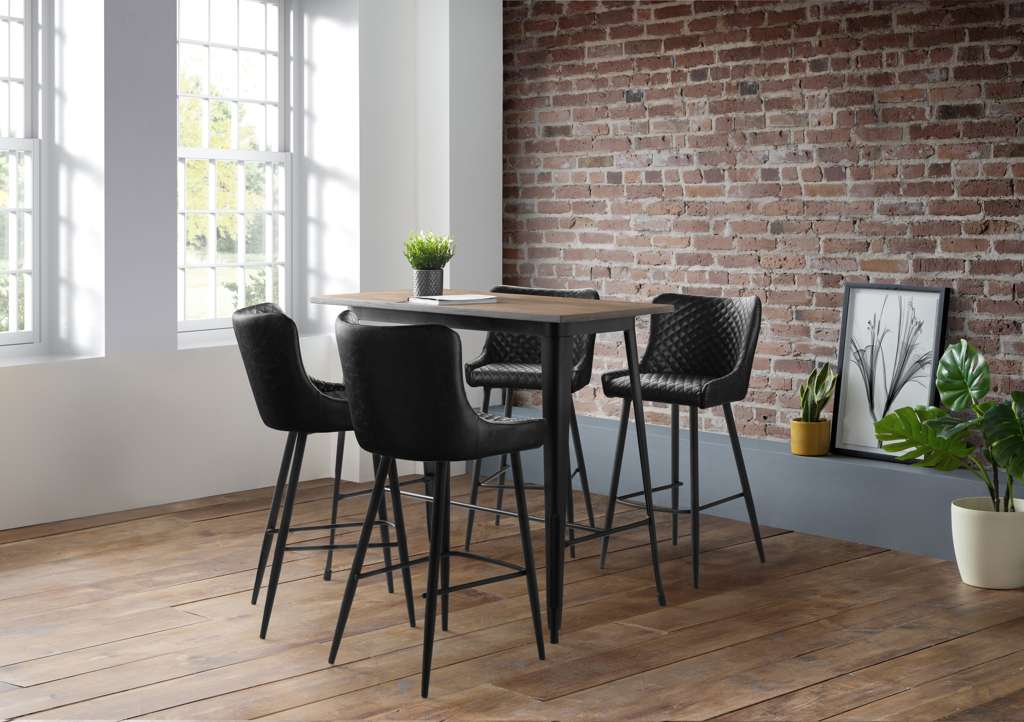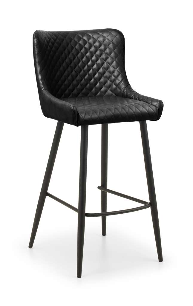 Combining a classic style with a modern twist, the Luxe bar stool is beautifully upholstered in faux leather with luxurious quilted detailing. Featuring contemporary black painted legs, this dining chair adds an industrial feel to any dining area.