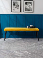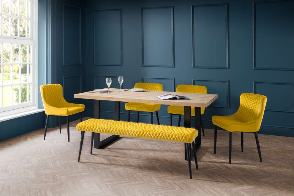 Beautifully upholstered in a luxurious velvet fabric finished with a stunning quilted detail, the Luxe Low Bench is available in Mustard, Blue, or Grey. Perfect for a striking hallway bench, or a statement dining area, with matching Luxe Chairs available.