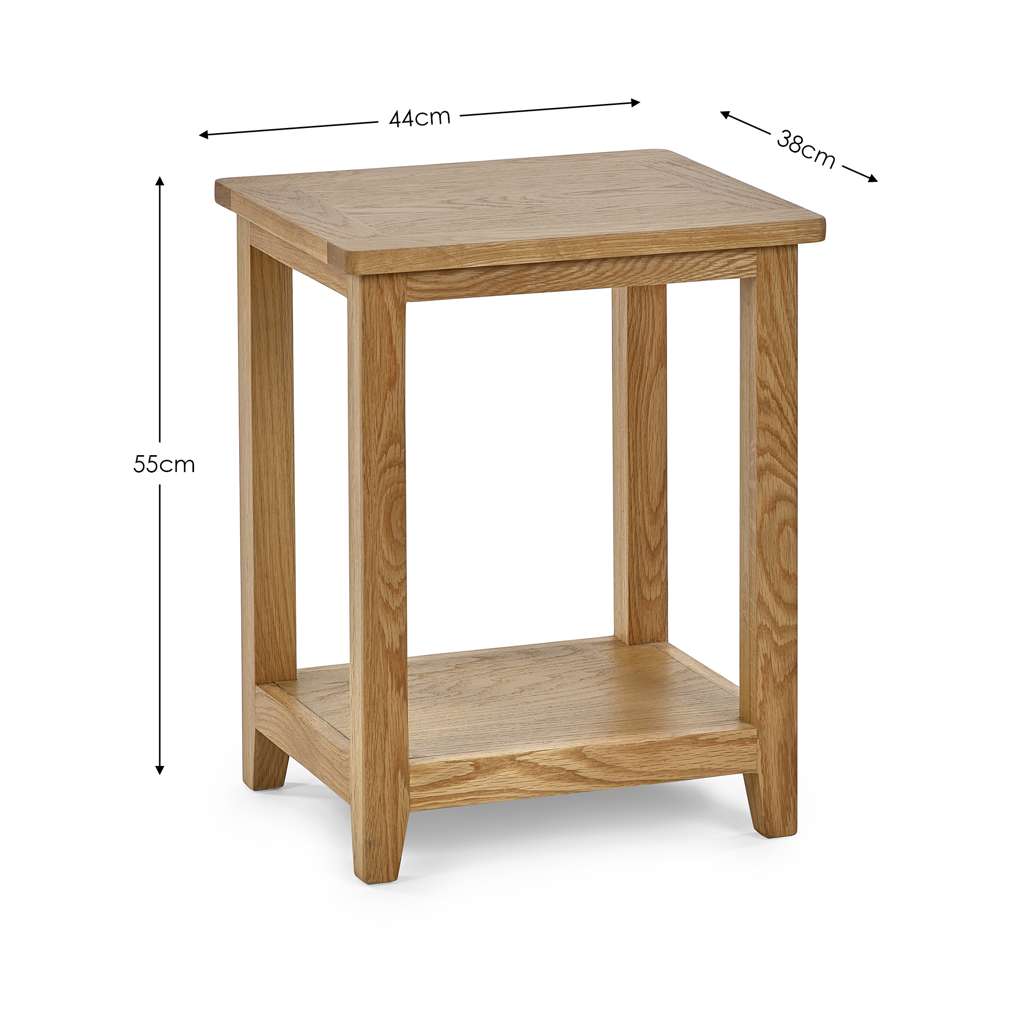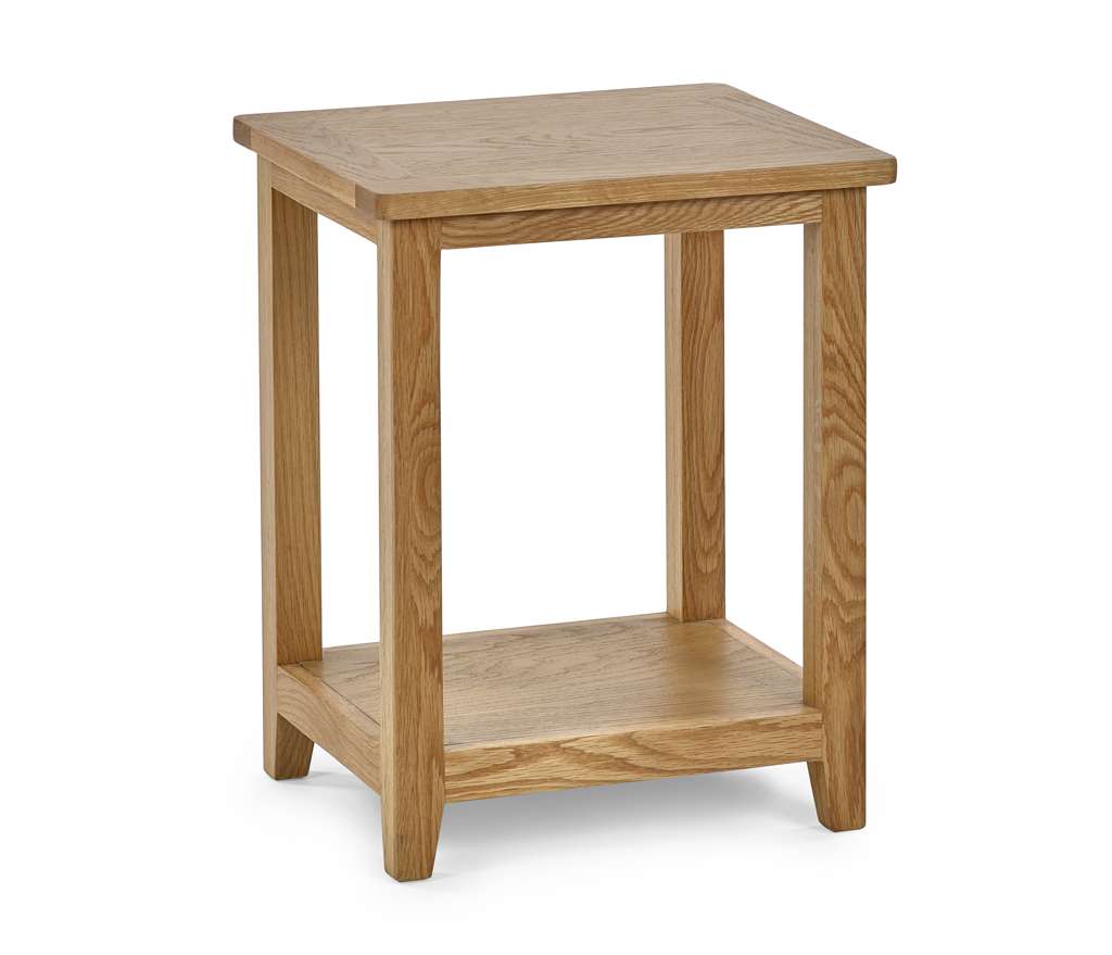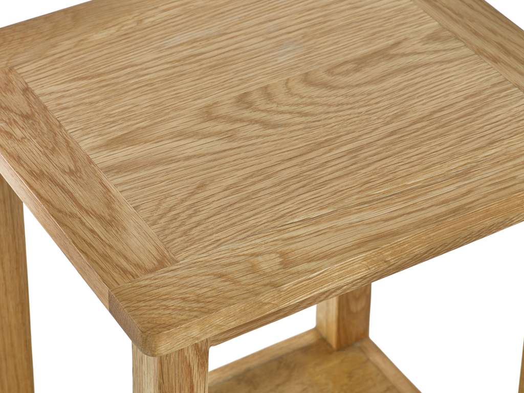 The Mallory Lamp Table is crafted from solid oak and oak veneers giving a simple and stylish design that is perfect for any living space. Durable and timeless, with a shelf below for added storage space.