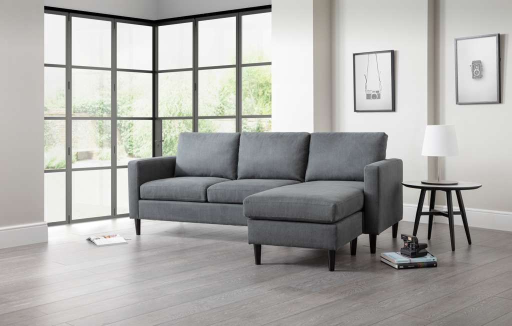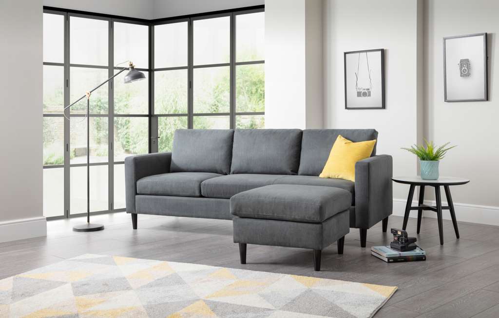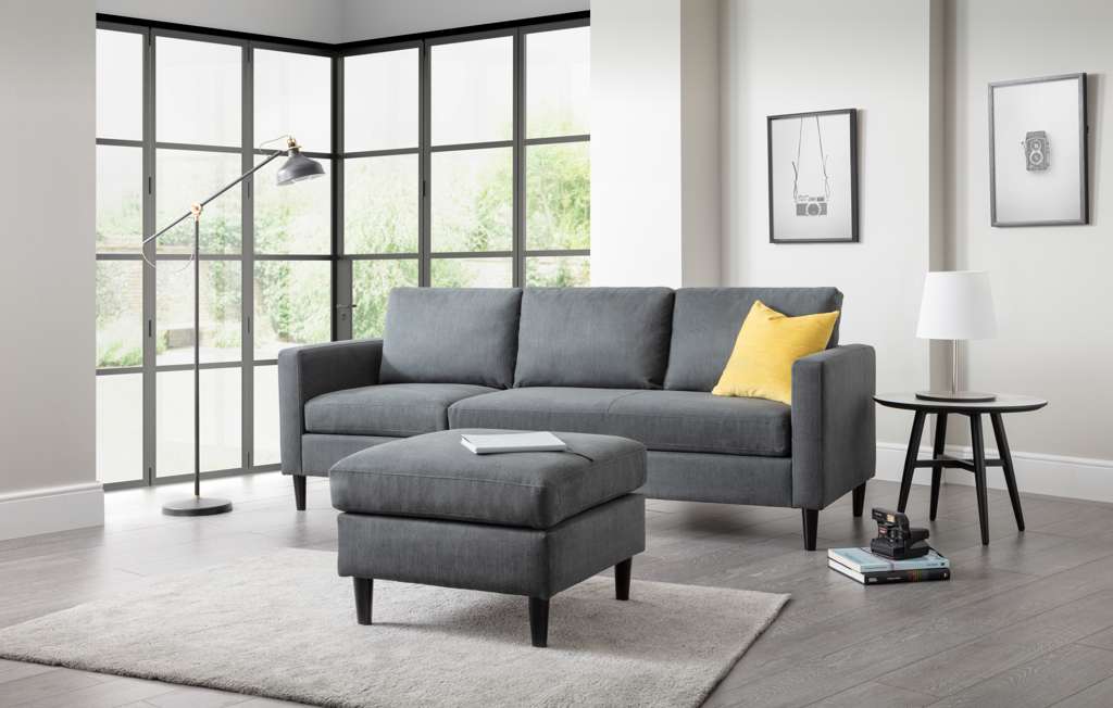 The Marant corner sofa is a timeless design upholstered in a soft touch grey linen fabric. Marant is extremely versatile, designed to be arranged in multiple configurations including a left or right hand chaise or separate sofa and ottoman. Narrow arms create a neatly compact scale and also provides the maximum amount of seating space making it perfect for a huge variety of lounge settings. Â
