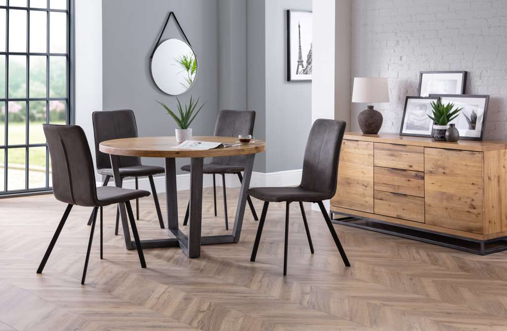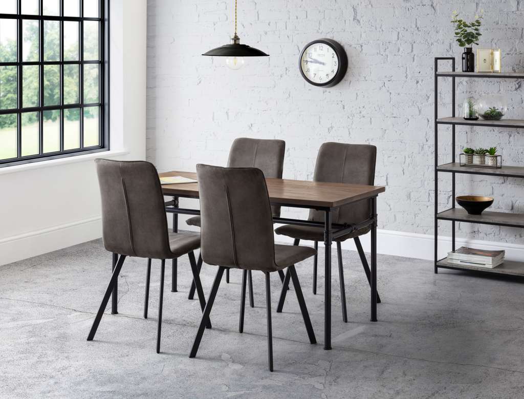 The Monroe Dining Chair combines a retro flair with a contemporary design, perfect for the modern home. Upholstered in a charcoal grey microsuede fabric, with powder coated steel legs, this sturdy design offers a modern, neutral design perfect for a range of decor. Match with the Brooklyn Dining Table, or the Tribeca Dining Table to create an industrial feel.
