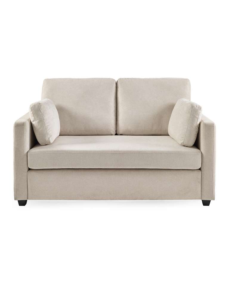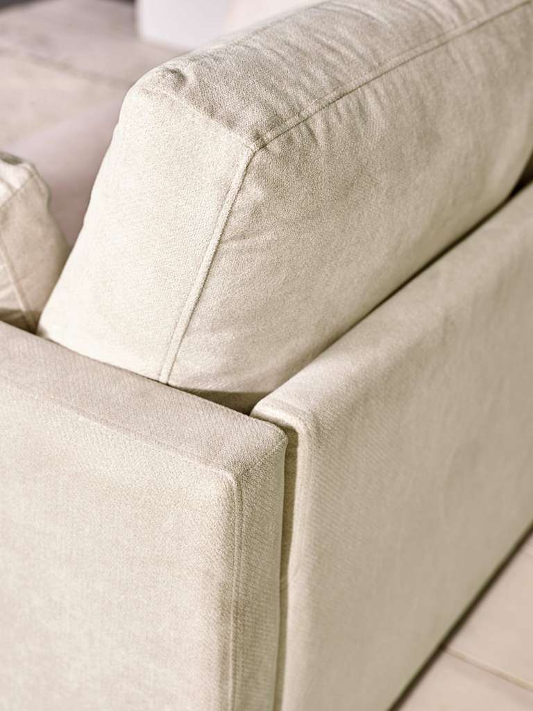 Add a touch of understated elegance to your living space with this 2 seater sofa. Featuring a compact yet inviting design, it comes with two loose cushions that provide extra support and versatility for a cosy lounging experience. Upholstered in a soft, neutral-toned chenille fabric, this sofa effortlessly blends with various décor styles.