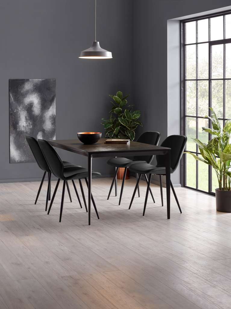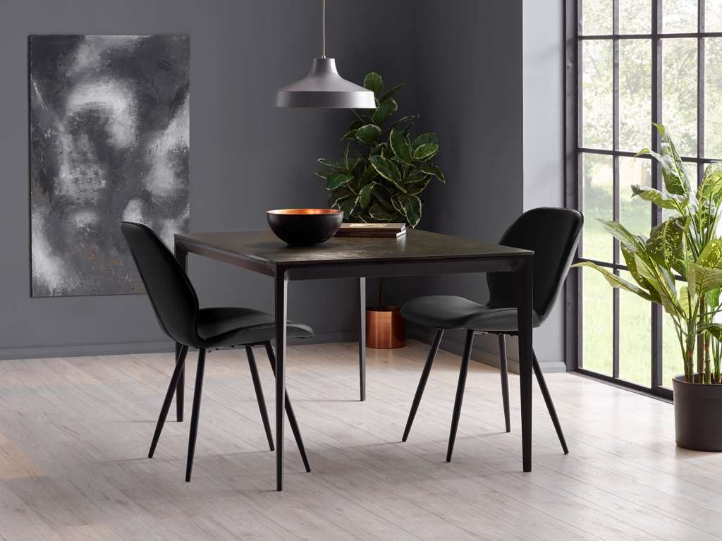 Introducing the Otto Dining Chair, where style effortlessly meets comfort. With their sleek armless silhouette and slanted back, these chairs invite you to sit back and relax. Sink into the plush foam padding and savor the luxurious feel of the grey upholstery. Supported by sturdy powder coated steel legs, they offer robust stability, perfect for any dining area. Minimal assembly requiredâjust add legs.