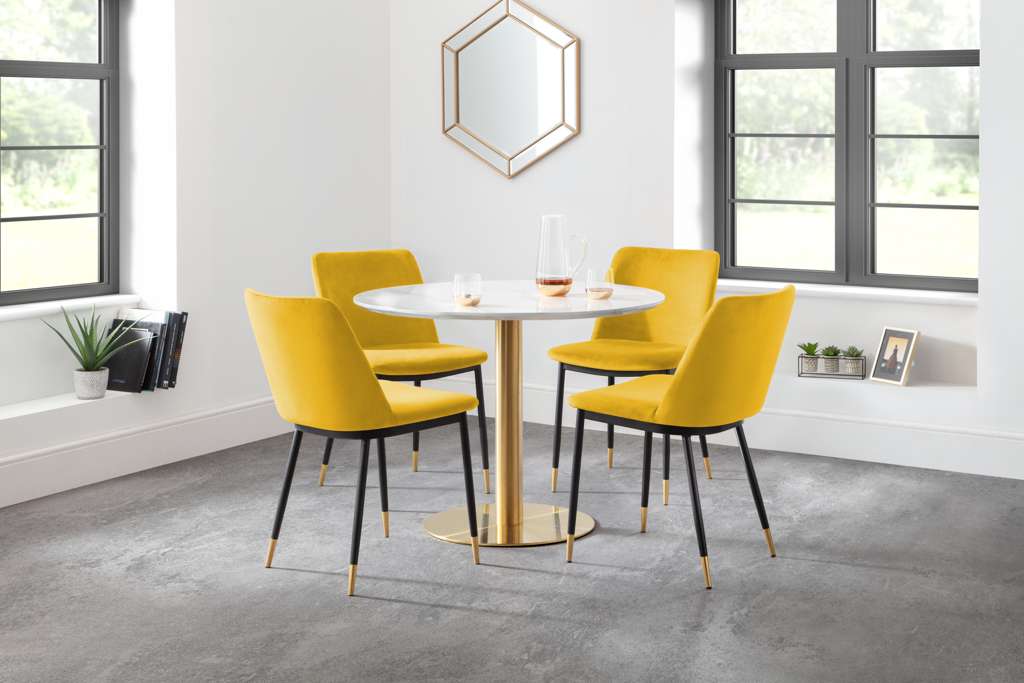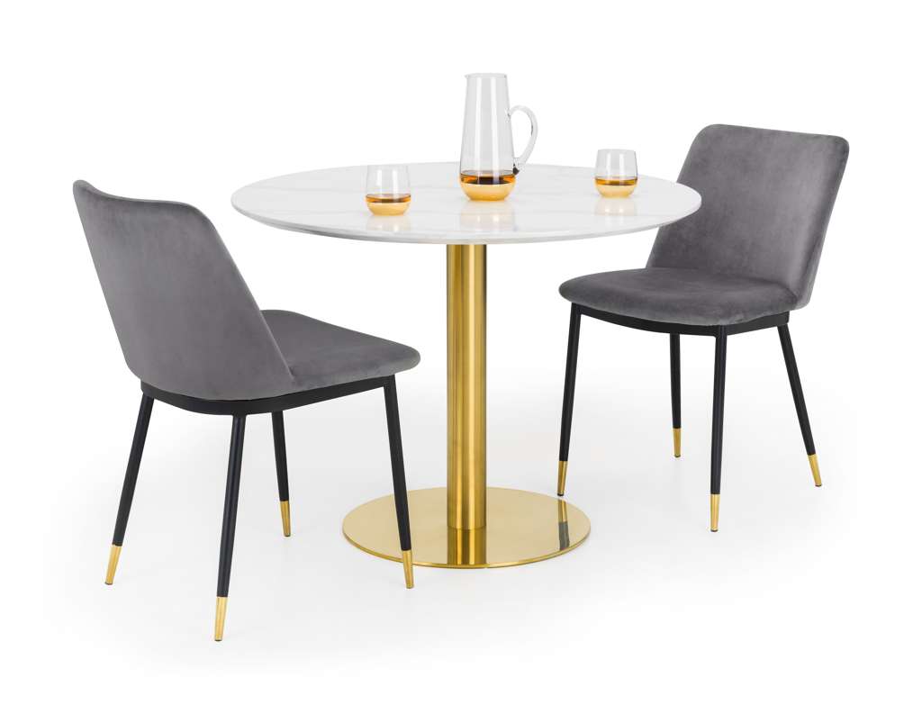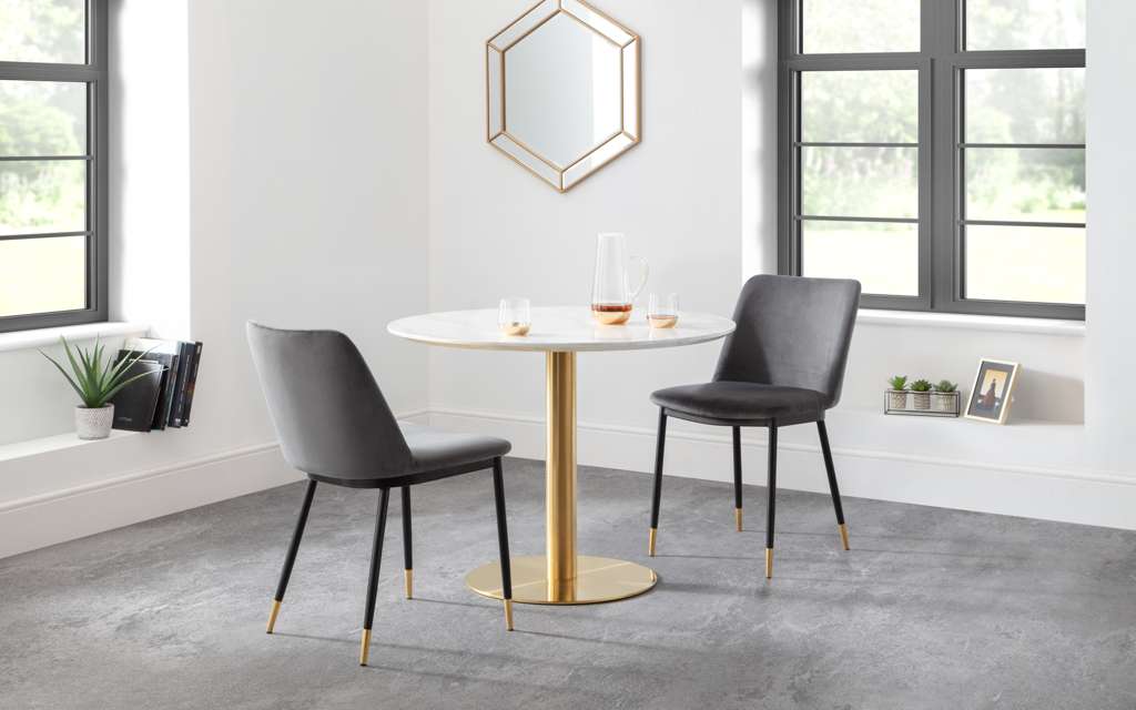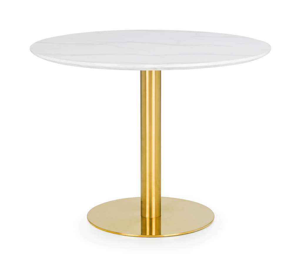 The Palermo round pedestal table is a contemporary, modern, and sleek piece which will complete your dining experience. With an easy-to-wipe, crisp marble top and sturdy gold base, it oozes sophistication whilst being functional and classic. Whether youâre having drinks with a friend, or a relaxed lunch with your loved ones, the Palermo is a beautiful addition to any home.