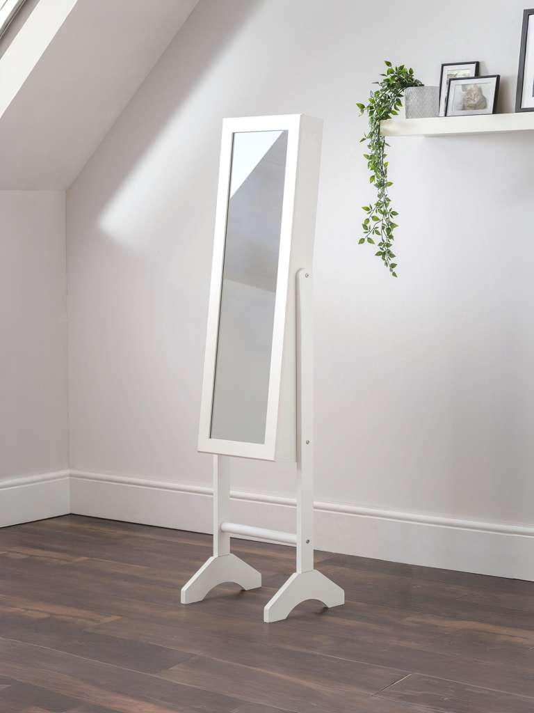 Transform your daily routine with the Prima Mirror, a perfect blend of style and convenience. This exquisite piece seamlessly integrates a full-length mirror with a chic jewellery cabinet, making it a standout addition to your bedroom or dressing room. Enjoy effortless access to your favourite necklaces, rings, watches, and bracelets, all beautifully organised in one elegant space. With the Prima Mirror, elevate your getting-ready experience to new heights of sophistication and ease. Minimal assembly is required for instant enjoyment.