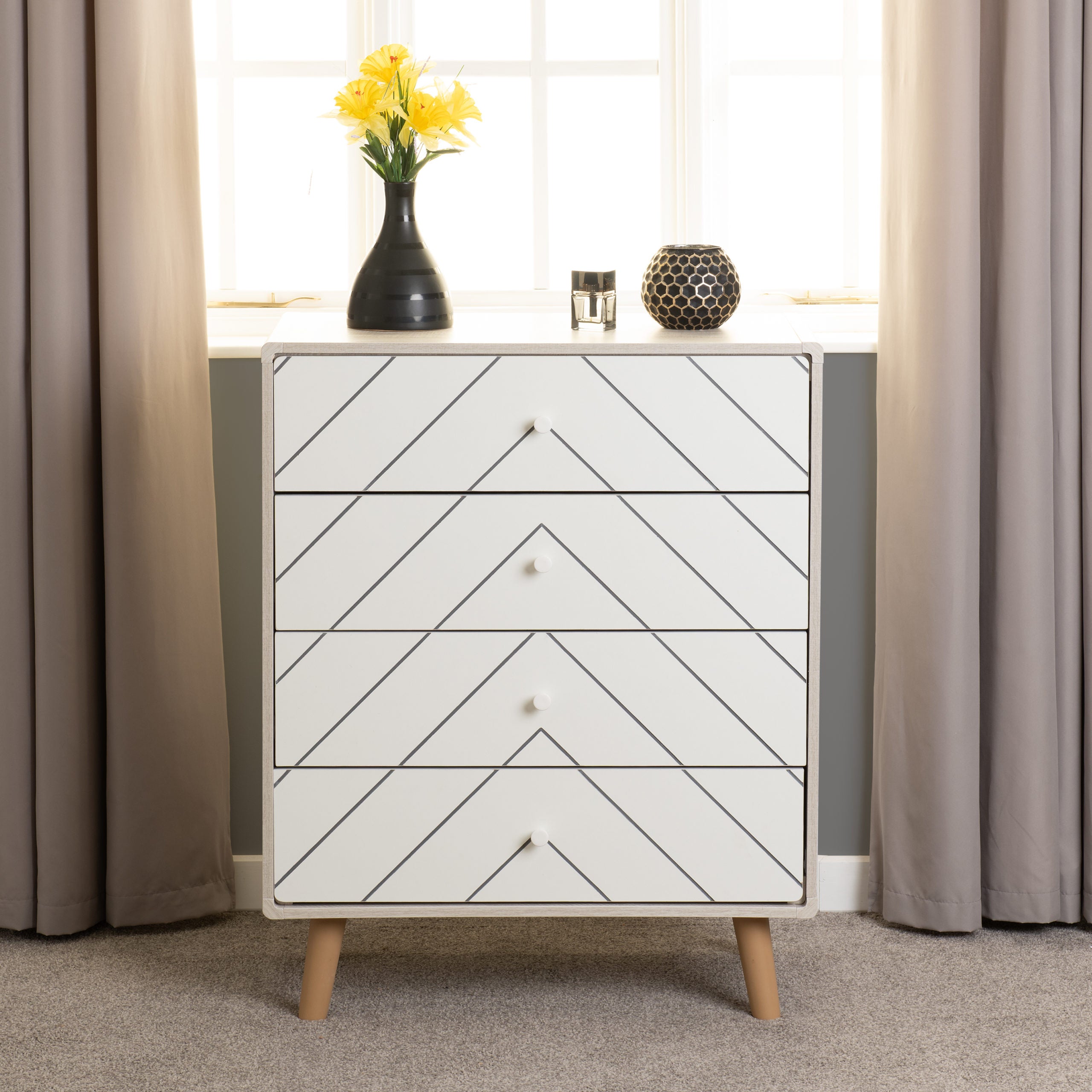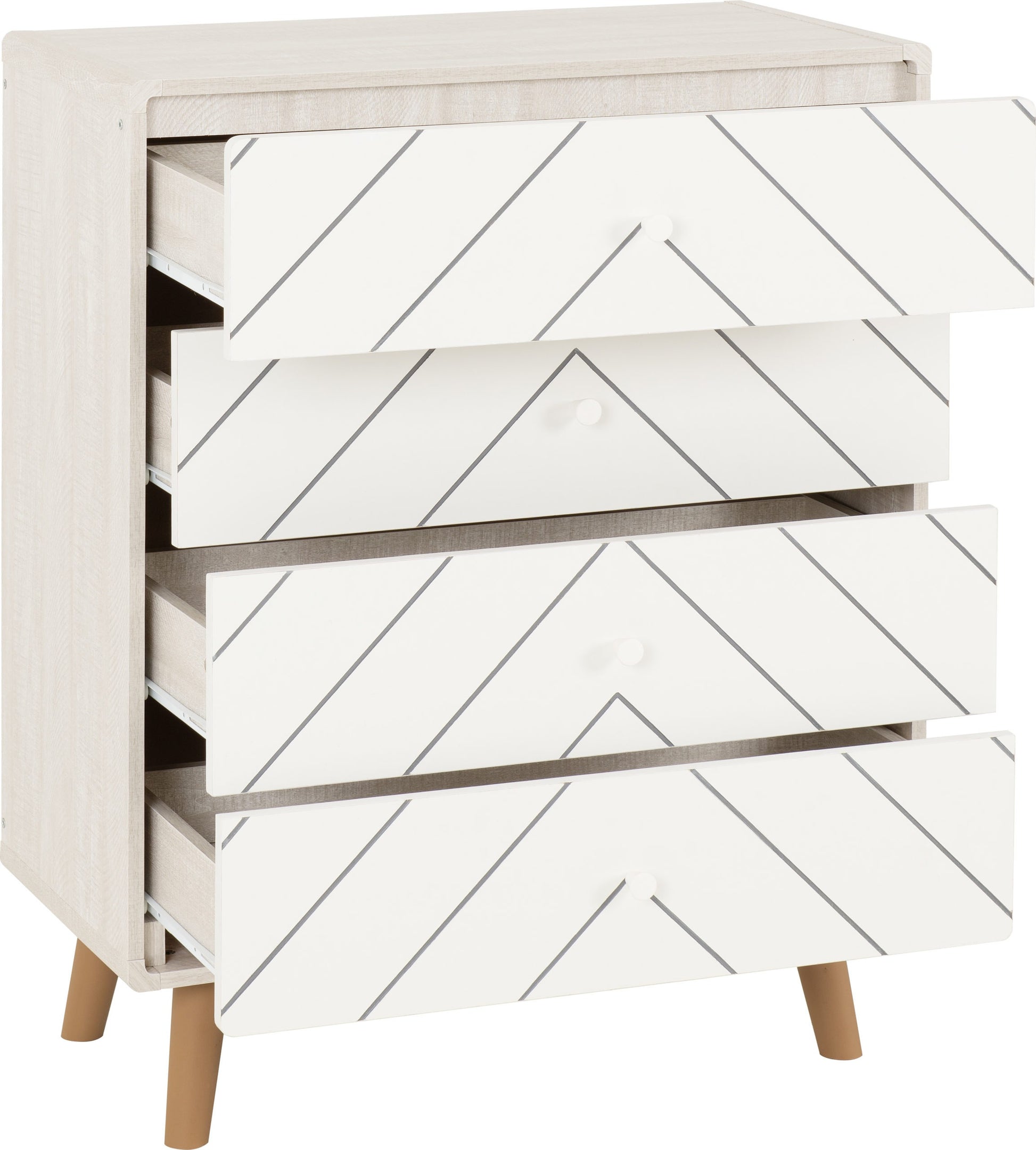 The Dixie 4 Drawer Chest in a Dusty Grey/White adds a homely touch with a modern edge. Everyday-friendly and tidy, it offers practical space for clothes and essentials you'll use from day one. Sturdy by design, it pairs simple lines with a quality feel that lasts.