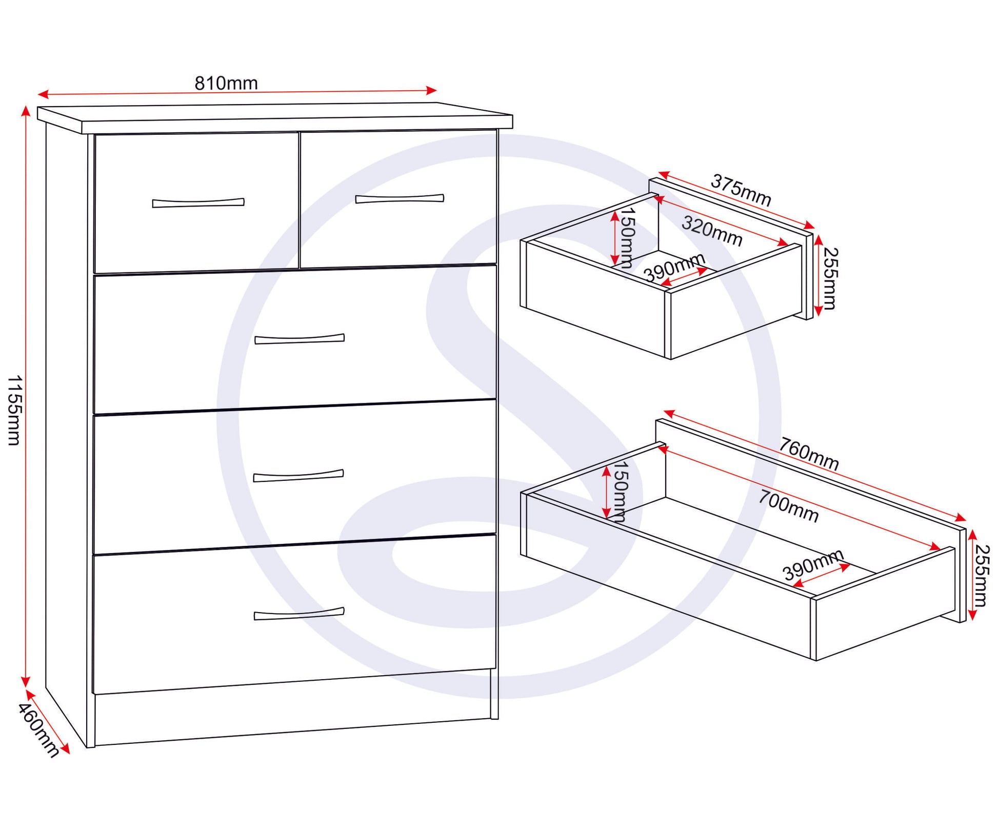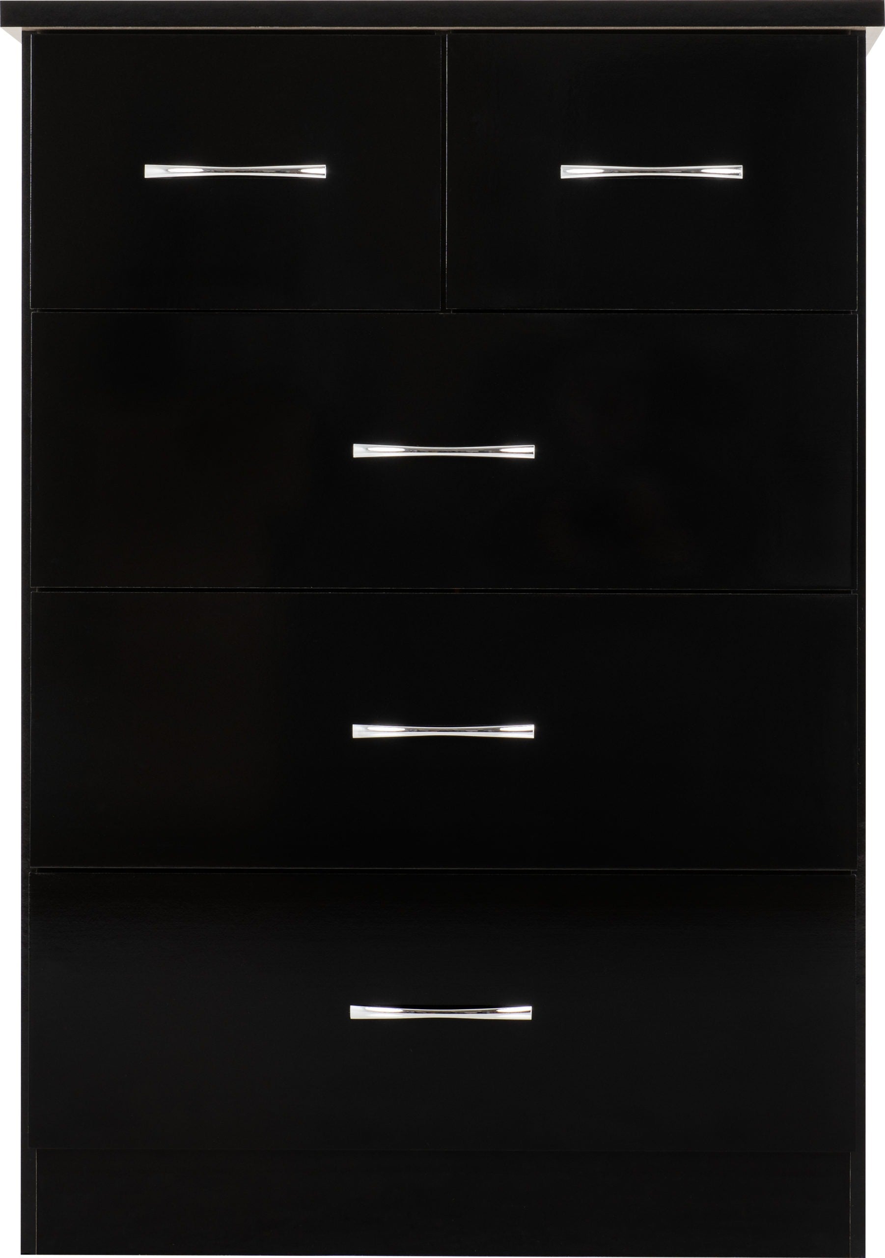 Meet the Nevada 3+2 Drawer Chest showcasing a Black Gloss-effortless style for everyday living. Thoughtfully designed for busy family spaces, it offers three deep drawers with two door compartments to keep life neatly organised. Clean lines and a durable build make it an easy fit in both modern and classic rooms.