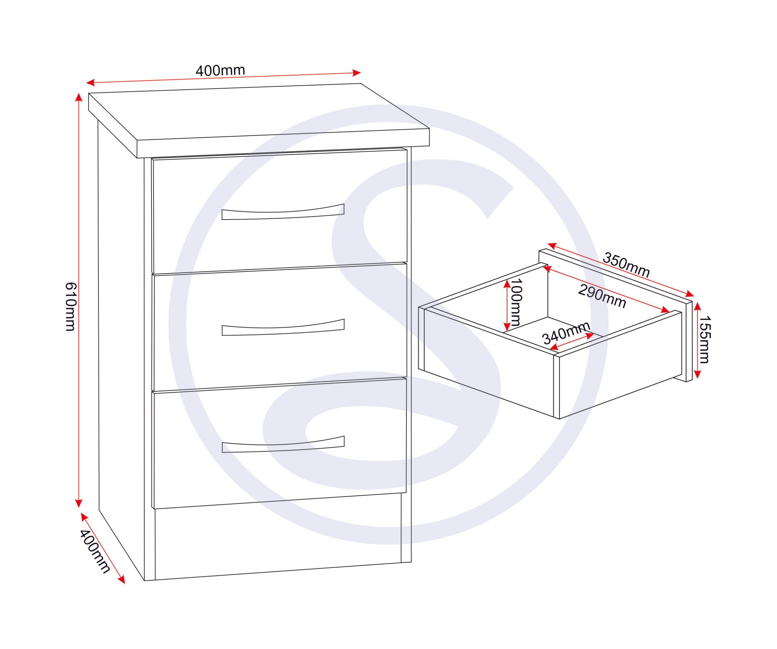 The Nevada 3 Drawer Bedside showcasing a Black Gloss adds a homely touch with a modern edge. Practical and good-looking, it delivers smart storage that keeps things tidy without the fuss. With a quietly premium feel, it's made to look good and work hard for years.
