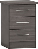 Make space feel calm and considered with the Nevada 3 Drawer Bedside finished in Black Wood Grain. Practical and good-looking, it delivers practical space for clothes and essentials without the fuss. Sturdy by design, it pairs simple lines with a quality feel that lasts.