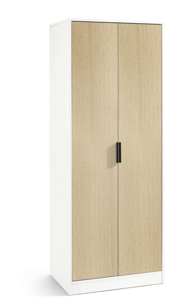 The Alba 2 Door Wardrobe in White and Oak introduces a fresh, modern style to your bedroom storage. Its sleek white finish pairs beautifully with warm oak accents, creating a balanced and contemporary look that fits effortlessly into any modern interior. Behind the two spacious doors, you'll discover generous hanging space and shelves, providing ample room to keep your clothes neatly organised. Enhanced by black handles, this wardrobe is a stylish and practical addition to your bedroom.
