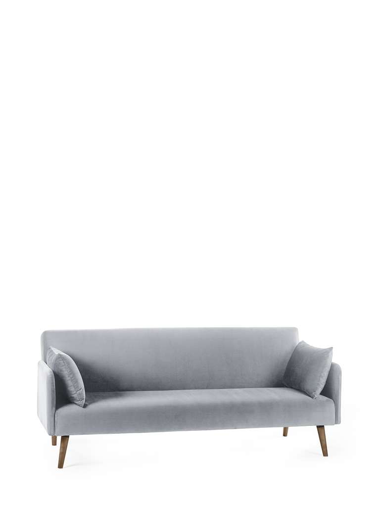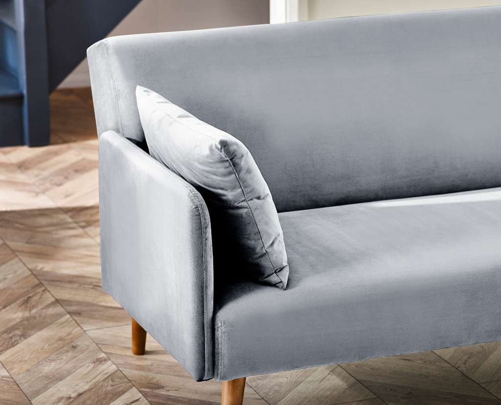Discover the Andi Sofa Bed in Greyâa perfect blend of retro charm and contemporary style, bringing both comfort and versatility to your space. Upholstered in sleek grey fabric, this piece complements any decor and effortlessly folds out into a cosy bed, making it ideal for hosting overnight guests. Two matching pillows are included to enhance comfort and complete the look. With its pale wood-effect legs, it exudes warmth and sophistication, making it the perfect addition to compact or multifunctional rooms.
