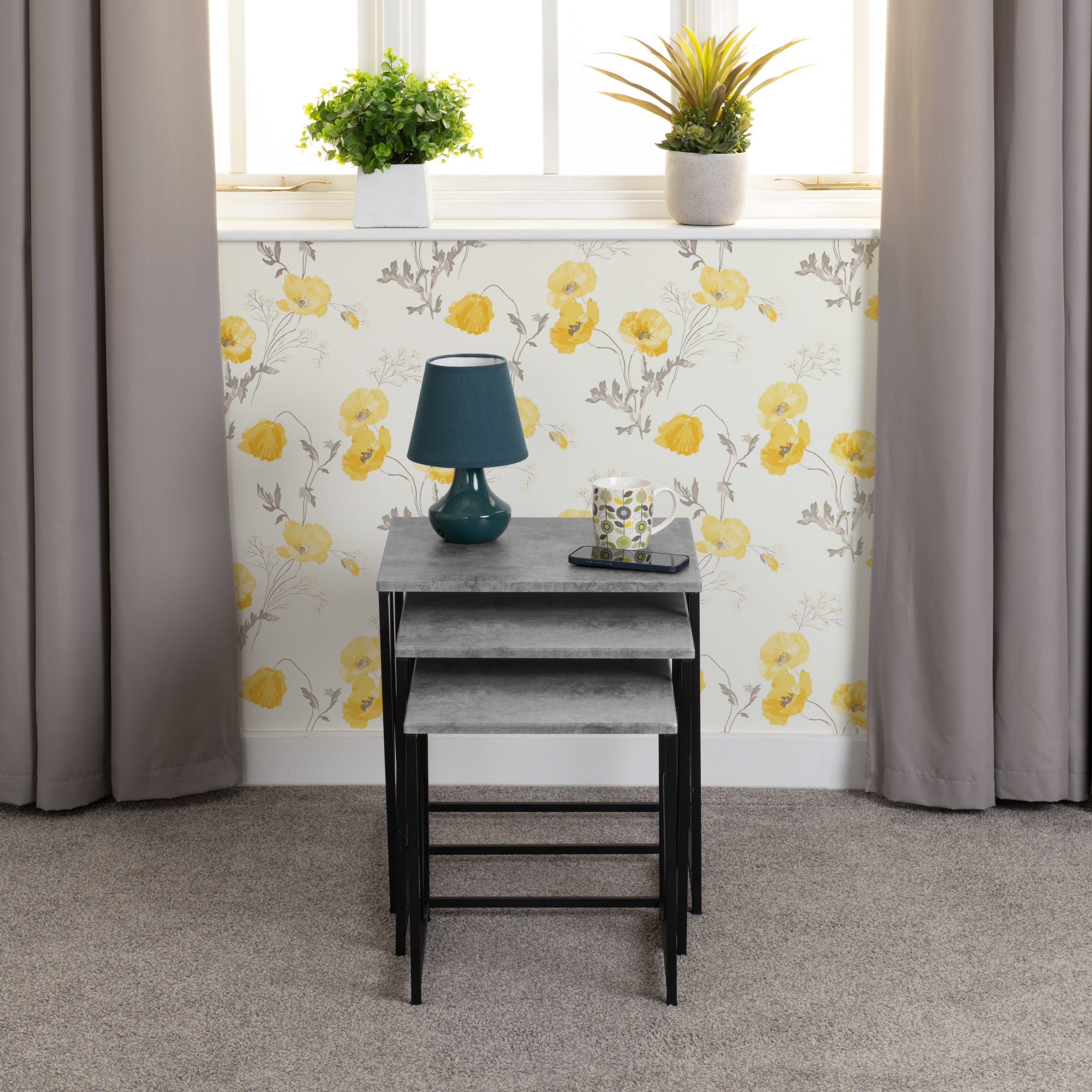 Make space feel calm and considered with the Athens Square Nest Of Tables wrapped in a Concrete Effect/Black. Thoughtfully designed for busy family spaces, it offers plenty of room to keep everything organised to keep life neatly organised. Sturdy by design, it pairs simple lines with a quality feel that lasts.