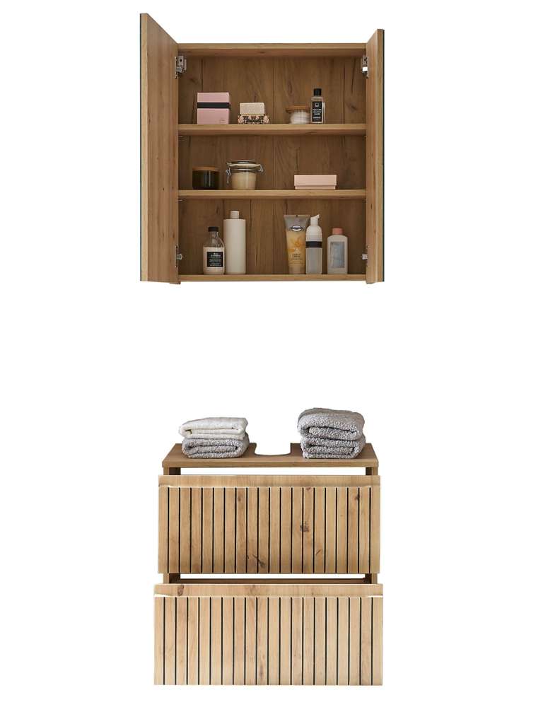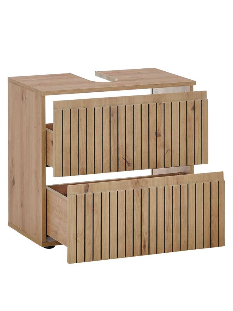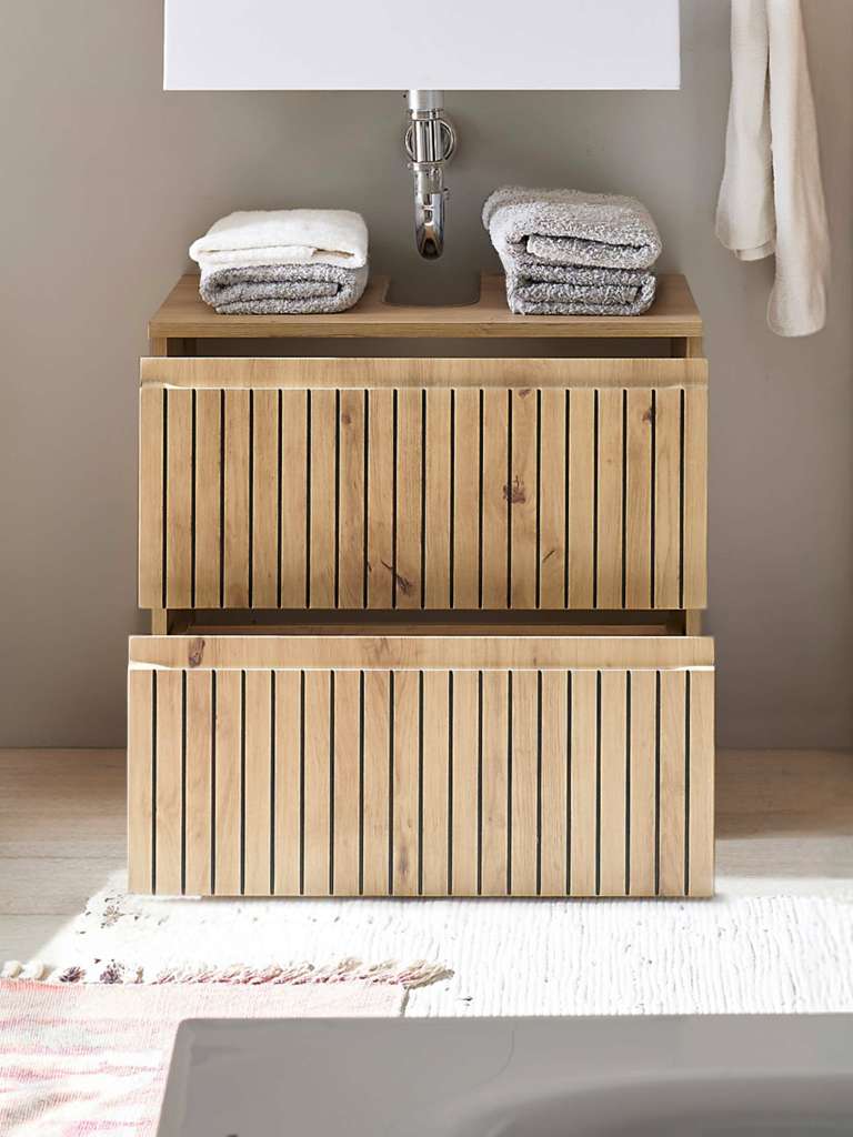 Uncover the ideal combination of practicality and understated elegance with the Austin 2 Drawer Under Sink Cabinet. This compact unit features two convenient drawers designed to maximise your bathroom space while providing stylish storage solutions. Inside, the spacious interior offers ample room for storing essentials, cleaning supplies, or extra towels. The charming slatted wood design enhances the overall aesthetic with a cohesive, natural look, while the discreet handles add a sophisticated touch.