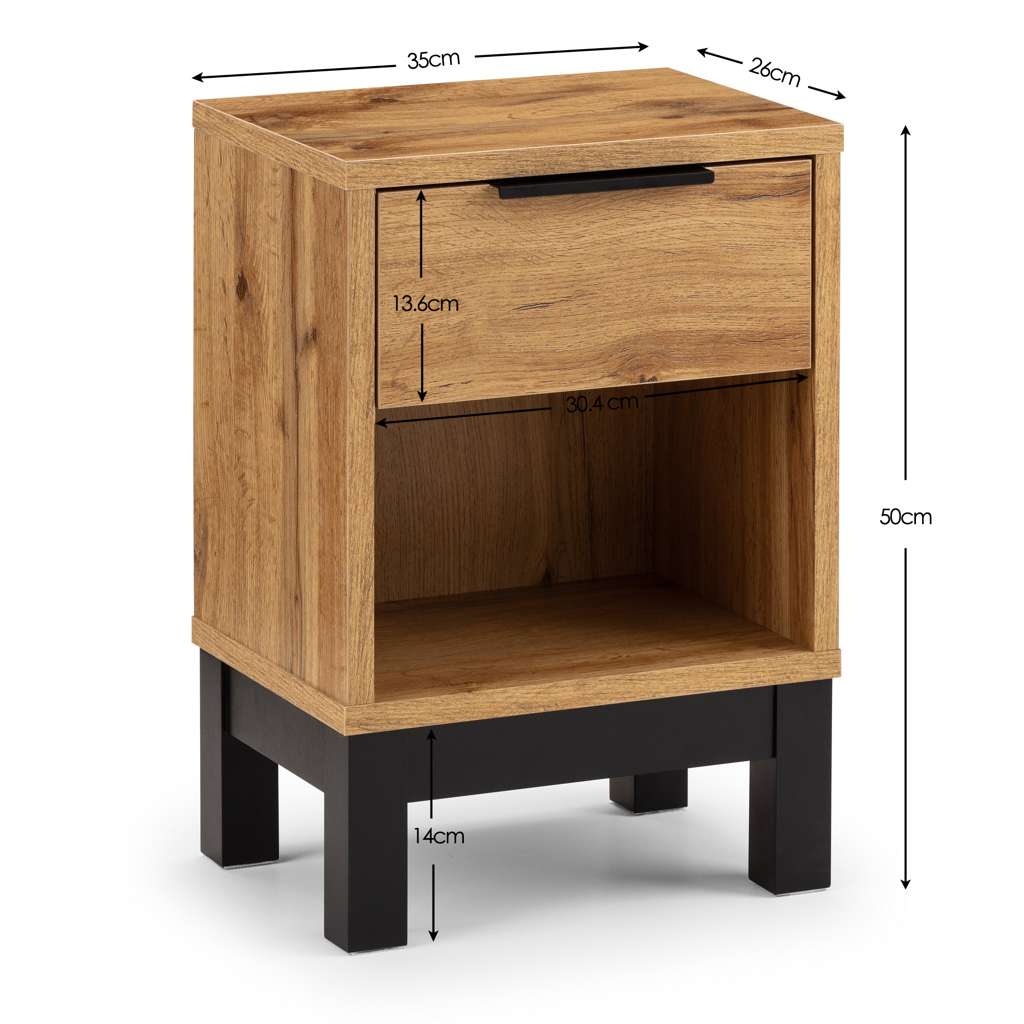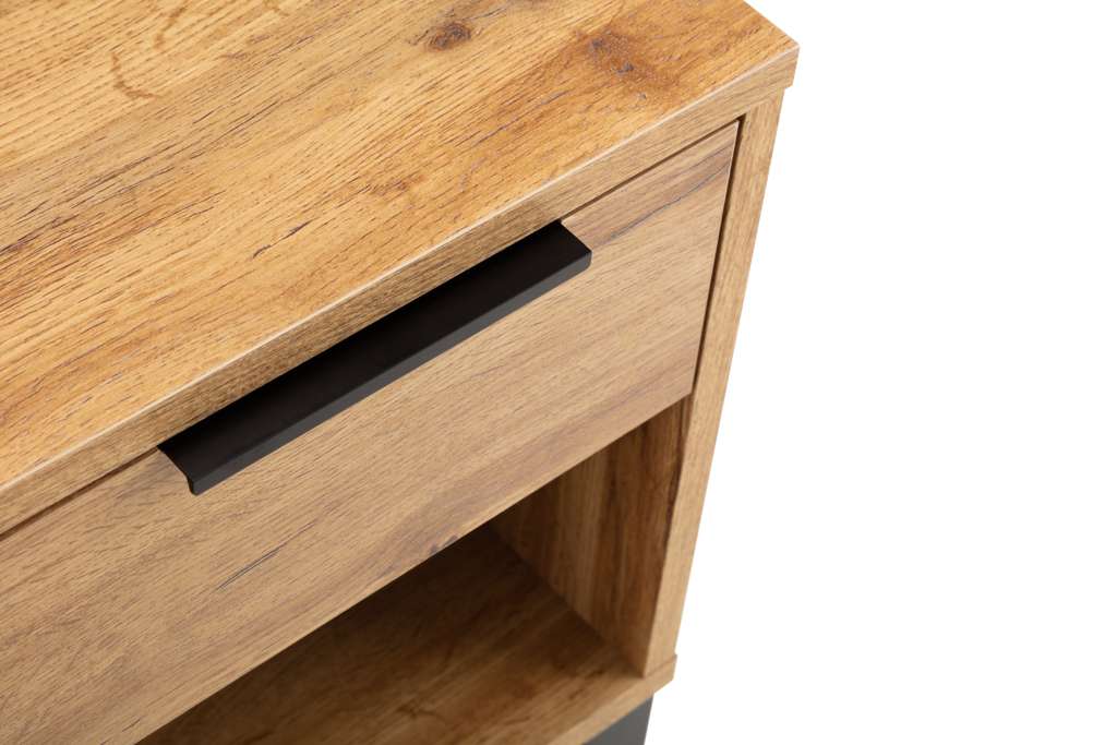 Using revolutionary click furniture technology, the Bali collection combines high quality style with simple assembly. With a modern oak finish and contrasting black legs and handles, the Bali collection creates a classic industrial look in your bedroom â leaving you with a high-quality interior, with low maintenance upkeep. This collection includes: 1 drawer bedside, 2 drawer bedside, 4 drawer chest, 6 drawer wide chest, dressing table/desk, wardrobe, and bookcase bed.