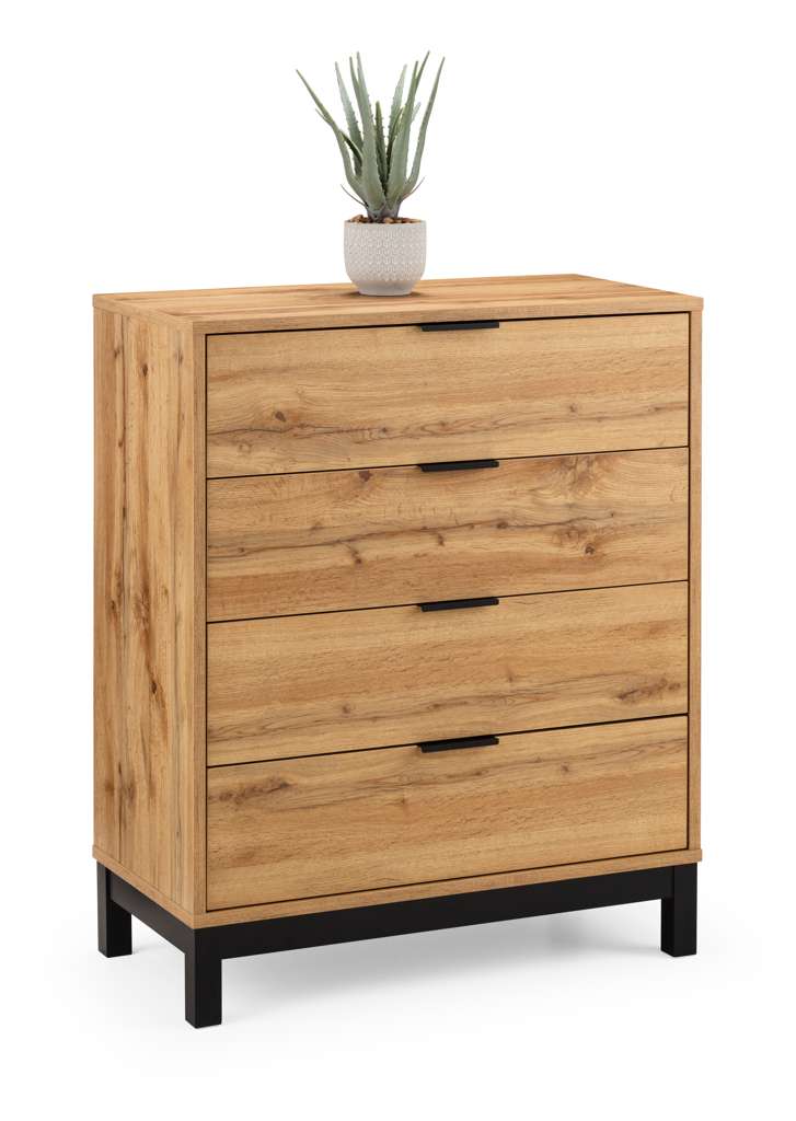 Using revolutionary click furniture technology, the Bali collection combines high quality style with simple assembly. With a modern oak finish and contrasting black legs and handles, the Bali collection creates a classic industrial look in your bedroom â leaving you with a high-quality interior, with low maintenance upkeep. This collection includes: 1 drawer bedside, 2 drawer bedside, 4 drawer chest, 6 drawer wide chest, dressing table/desk, wardrobe, and bookcase bed.