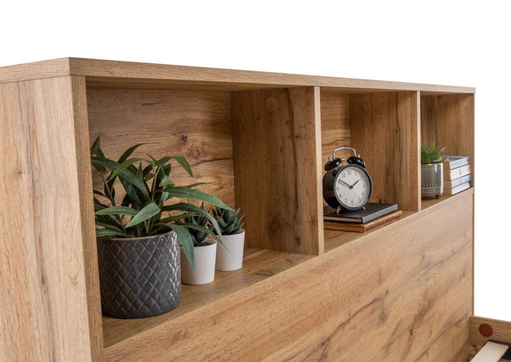 Bali Bookcase Headboard Bed 150cm - Light Oak