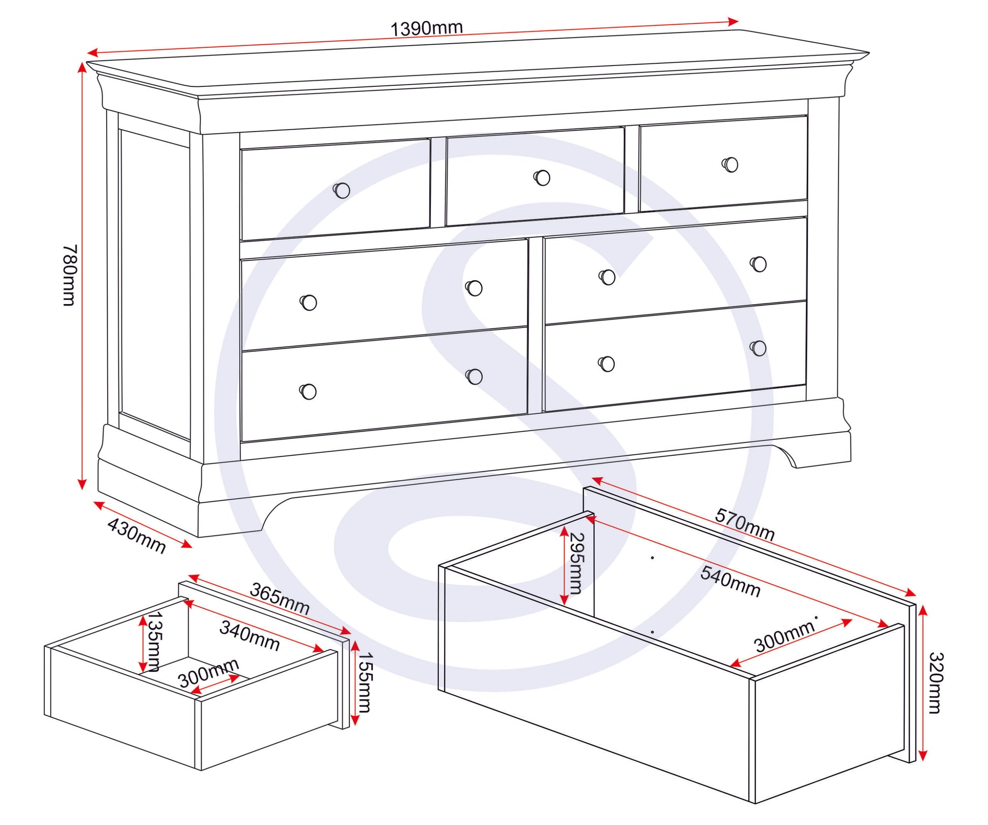 - Bordeaux 3+2 Drawer Chest - Ivory