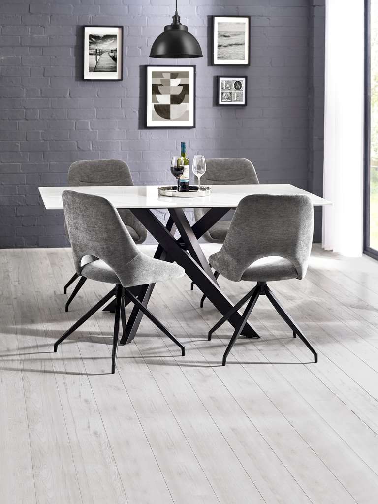 Add a touch of luxury to your dining space with the Bradley White Marble Dining Table. Featuring an elegant ceramic top with a striking Italian white marble effect, this table exudes elegance and timeless beauty. Supported by a robust black steel spider-shaped leg design, it offers exceptional stability while making a bold statement. Perfect for both everyday meals and special occasions, this dining table blends modern style with functional design, making it an eye-catching centerpiece in any home. Minimal assembly is required, making it easy to set up and enjoy right away. Minimal assembly required to have it ready in no time.