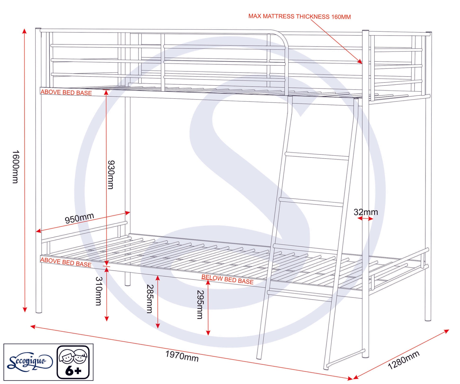 Brandon 3' Bunk Bed - Black