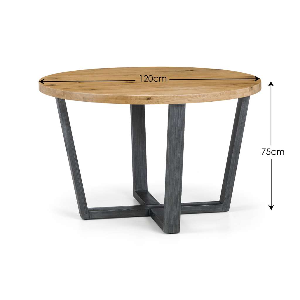 Made from solid oak, this round dining table offers a rustic finish emphasising the stunning natural wood grain. The Brooklyn Round Dining Table offers a vintage edge featuring industrial trestle style metal legs. This spacious table can seat up to 4 people, perfect for a wide range of modern decor. Part of the Julian Bowen Brooklyn Dining and Occasional Collection, also a great match with the Soho Dining Chairs.