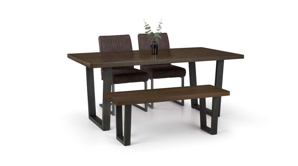Made from solid oak, this dining table offers a rustic dark oak finish emphasising the stunning natural wood grain. The Brooklyn Dining Table offers a vintage edge featuring industrial trapeze style metal legs. This spacious table can seat up to 6 people, perfect for a wide range of modern decor. Part of the Julian Bowen Brooklyn Dining and Occasional Collection, also a great match with the Soho Dining Chairs.
