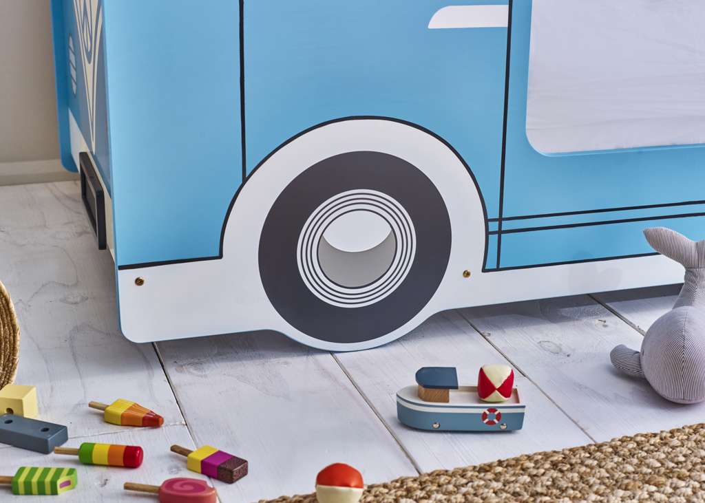 Introducing our Campervan Bed in a delightful Light Blue finish â the perfect blend of adventure and comfort for your little one's bedroom. This Low Sleeper bed is not just a place to rest; it's a whimsical vehicle for dreams and imaginative play. Crafted with care and creativity, the Campervan Bed features charming details that transport your child to a world of adventures on the open road. The light blue color adds a playful touch, creating a cheerful atmosphere in their sleep sanctuary. Designed with safety and functionality in mind, the low sleeper height ensures easy access for your child. The bed is crafted from sturdy materials, providing a secure and reliable space for your little one to sleep and play.