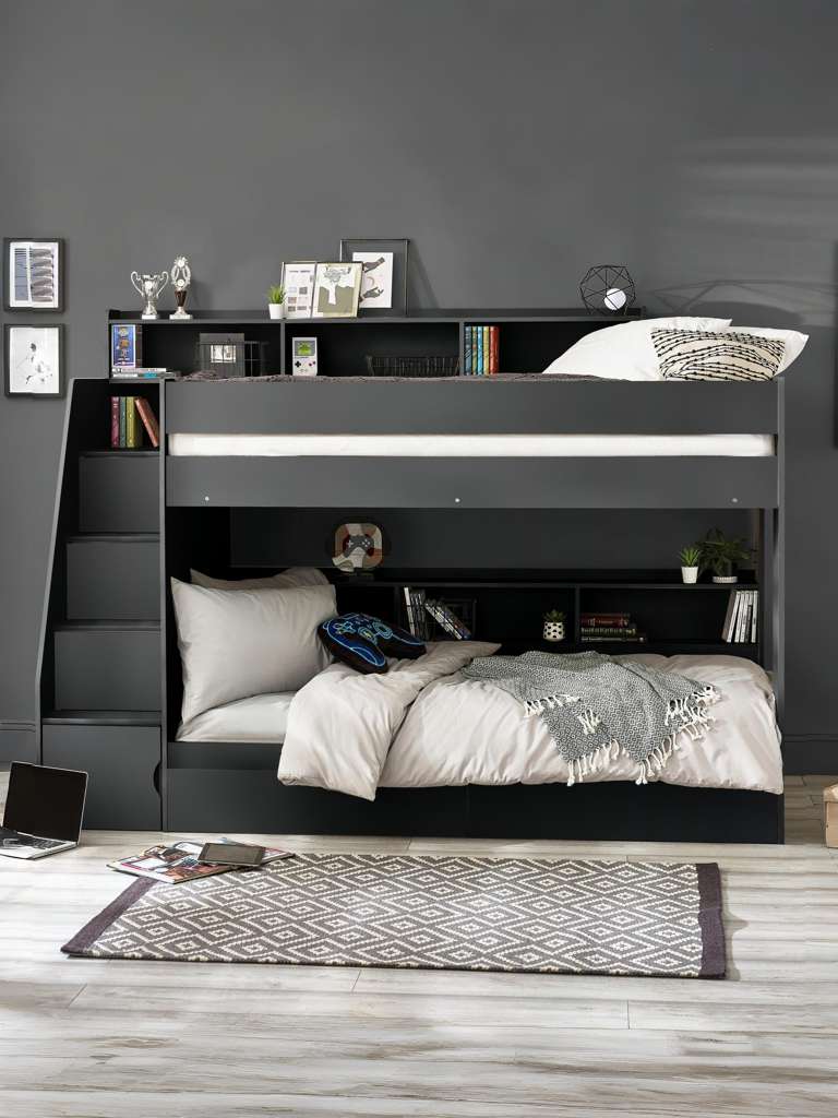 Camelot Staircase Bunk is a lacquered bunk bed created with innovative and functional construction. With spacious storage in the stairs, bottom bunk, top bunk and additional storage drawers at the bottom of the bunk - you'll never be short on space! Finished in an easily wipeable anthracite, the Camelot keeps your child's room looking clean and fresh with minimal upkeep, and will suit any decor style.