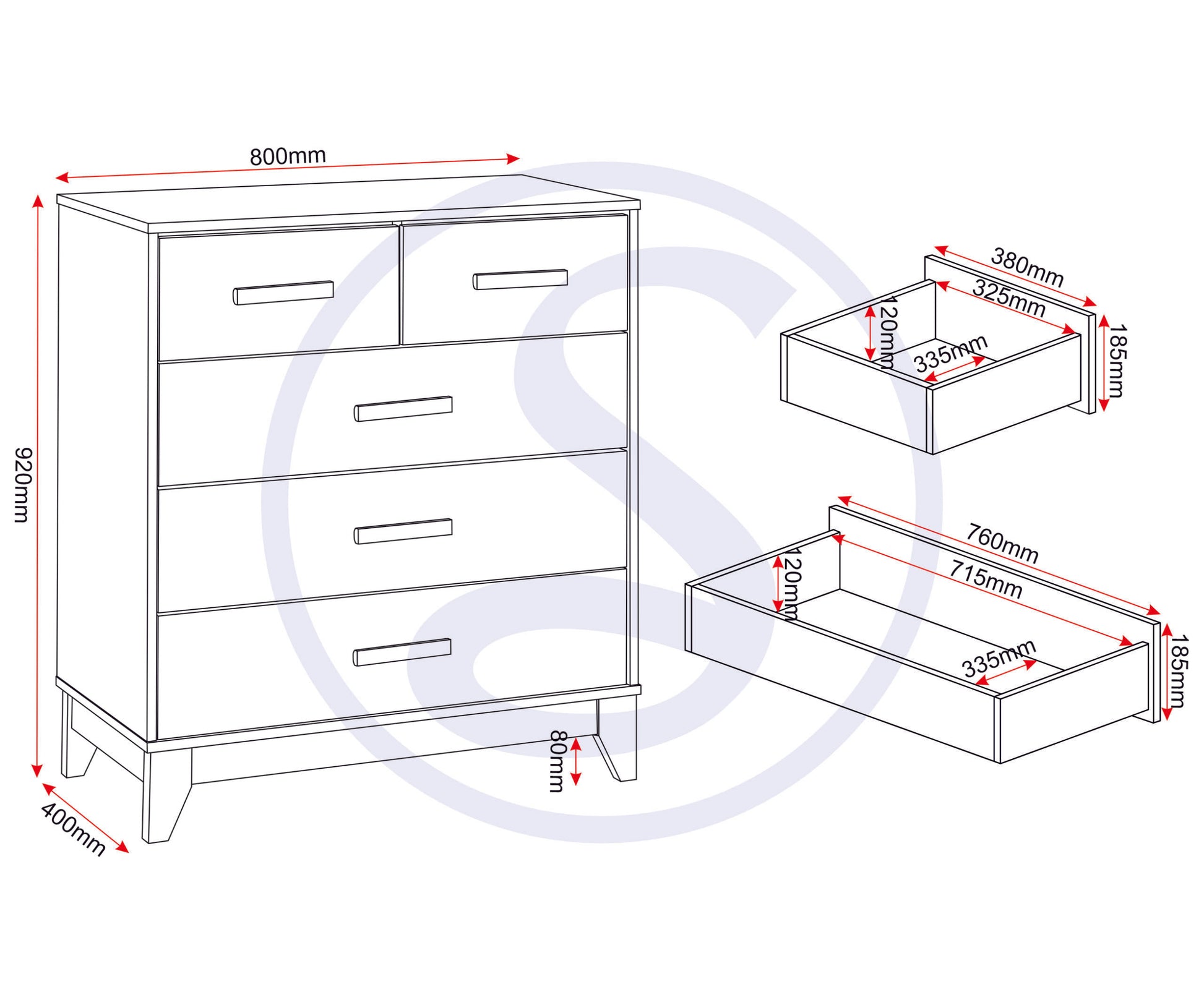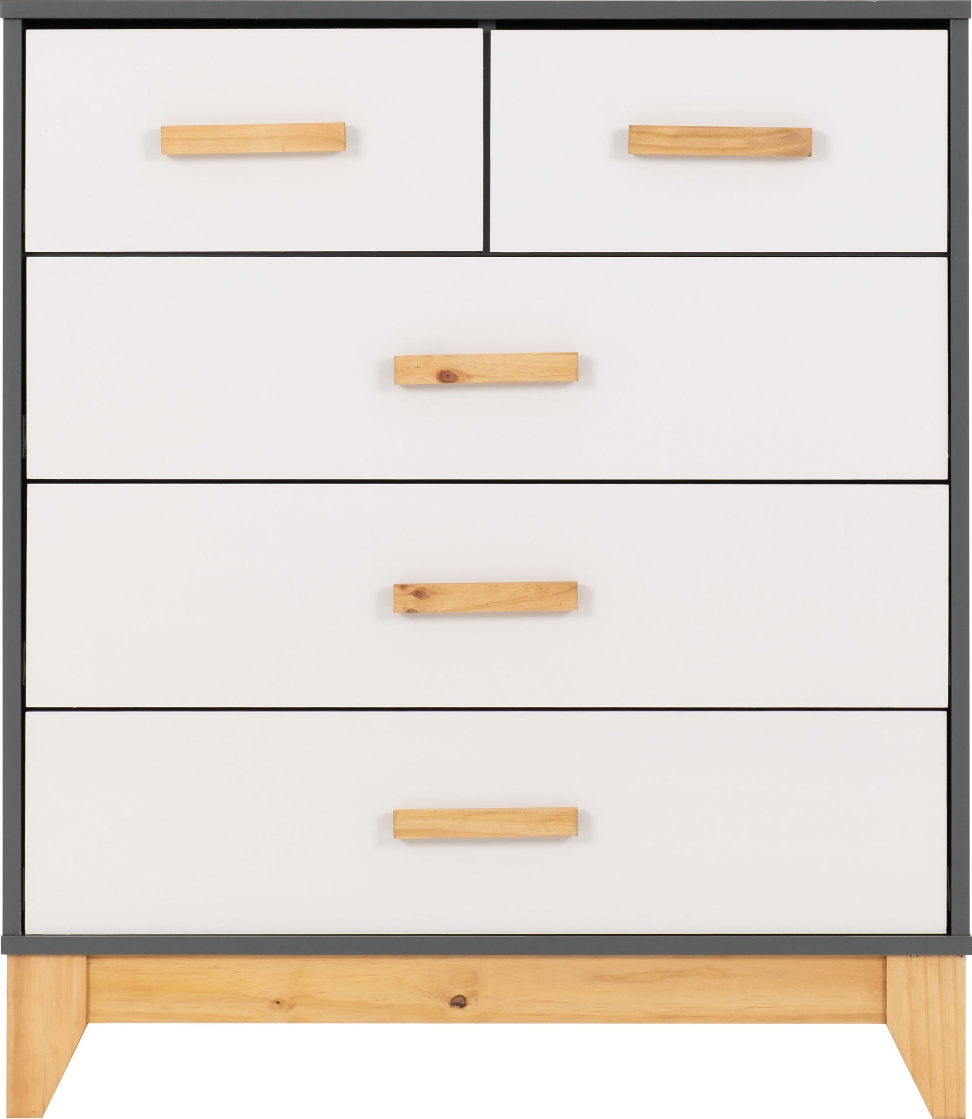 Cleveland 3+2 Drawer Chest - White/Grey Metal Effect